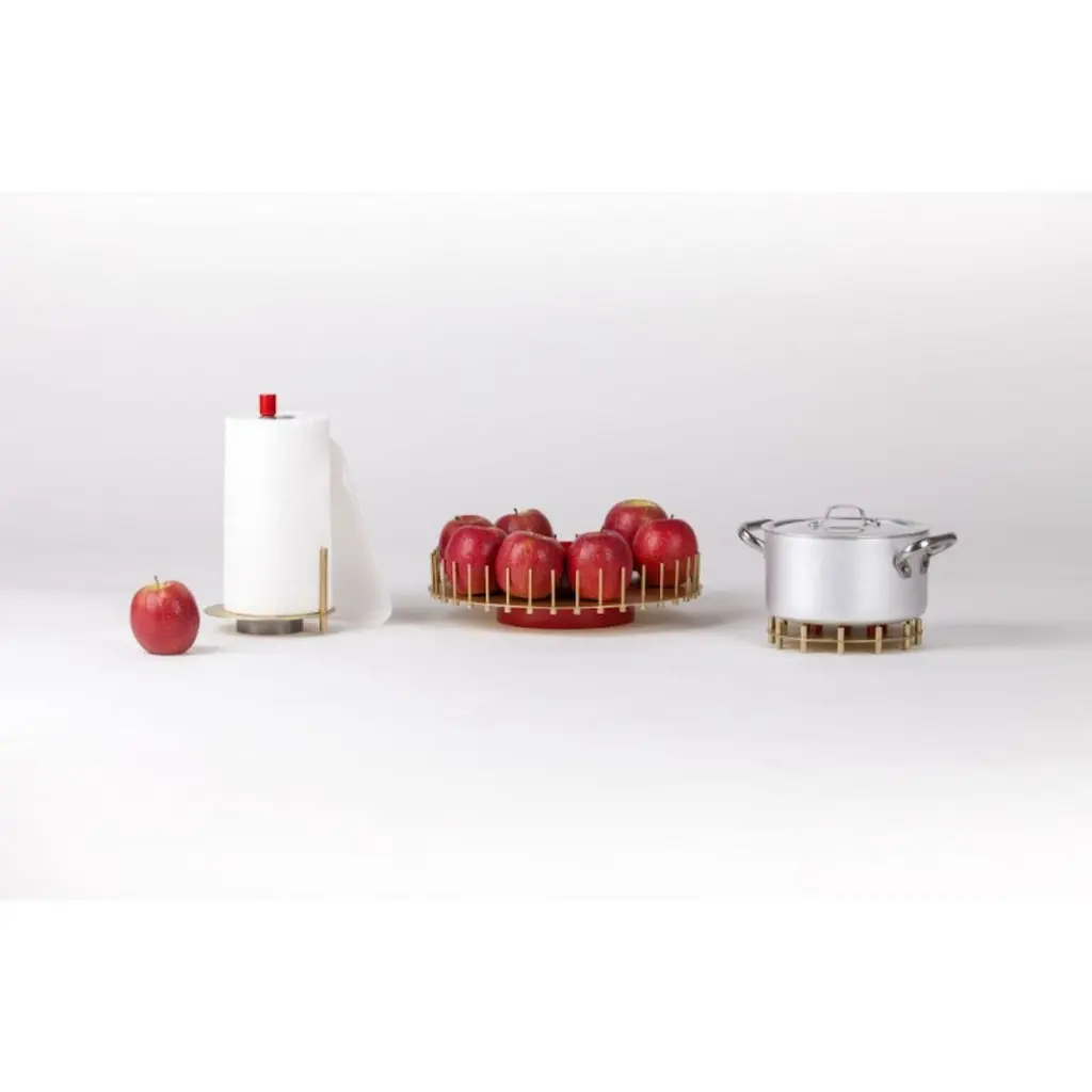 Unique Elementa Paper Roll Holder in Satin Brass by MingardoDimensions: D7.8 x H28.5 cm Materials:Natural satin brass and natural varnished ironWeight: 3 kgAlso available in different finishes.Elementa is a small collection of round table and kitchen accessories: trivet, fruit holder and paper roll holder. They are made in brass with plain var-nished iron and they take inspiration from the factory environment: just like gears, they are characterized by the precision of the juxtaposition of different sized discs and pivots, which creates an innovative aesthetic touch to the table.Mingardo Ilario founded Mingardo Blacksmith Workshop in 1970, after over twenty years’ experience in the metal processing field.The production was initially focused on simple blacksmith works for the construction industry. Over the time, it has become more refined, enabling the company to collaborate with internationally renowned companies and architects: from the first collaborations with architect Carlo Scarpa to the more recent commissions for Museo del Novecento in Milan, Parco della Musica in Florence, and Teatro Petruzzelli in Bari.Over the years, the Workshop has achieved great results, with the production of unique metal products, all hand-wrought by a highly skilled team of specialized artisans. Nowadays, it is highly regarded in the local artisan field for its high-end refined finishing touches and details, and for its know-how.