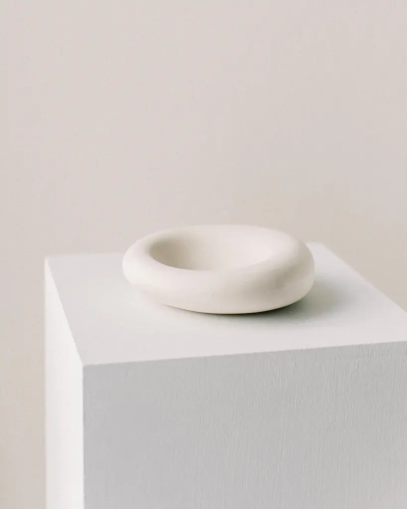 Unique heme form by Dust and FormDimensions: D 16.5 x 5 H cmMaterials: PorcelainOrigin Form Collection in three finishes: Hand-sanded (our Classic, smooth, bare finish) Ivory (satin white glaze) Charcoal (matte black glaze). Please contact us. The Heme Form references an essential and naturally occurring building block of life. Heme is an organic, ring-shaped molecule present in every single plant and animal. For humans, it allows our blood cells to carry oxygen through out our entire body. Heme connects us inside and out, giving us the ability to be alive.A form to prompt connection and togethernes.The Origin Form Collection is a visual exploration of human essence. The pieces within this collection exhibit common and fundamental aspects of our shared humanness. They are intended to live gracefully in whatever space feels best and serve as a visual reminder to connect to our deeper, truer selves. Dust and form pieces are designed and produced by Brielle Rovito. Each object is handmade with great care.
