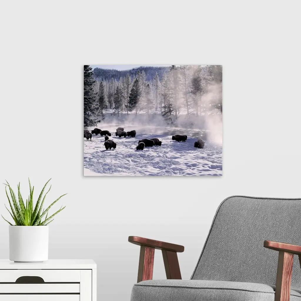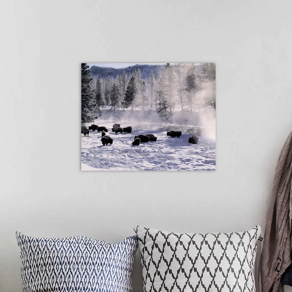 United States, Wyoming, Yellowstone NP, Madison River, buffalos wall art for home and office decor. Discover canvas art prints, photos, mural, big canvas art and framed wall art in GreatBigCanvas.com's varied collections.
