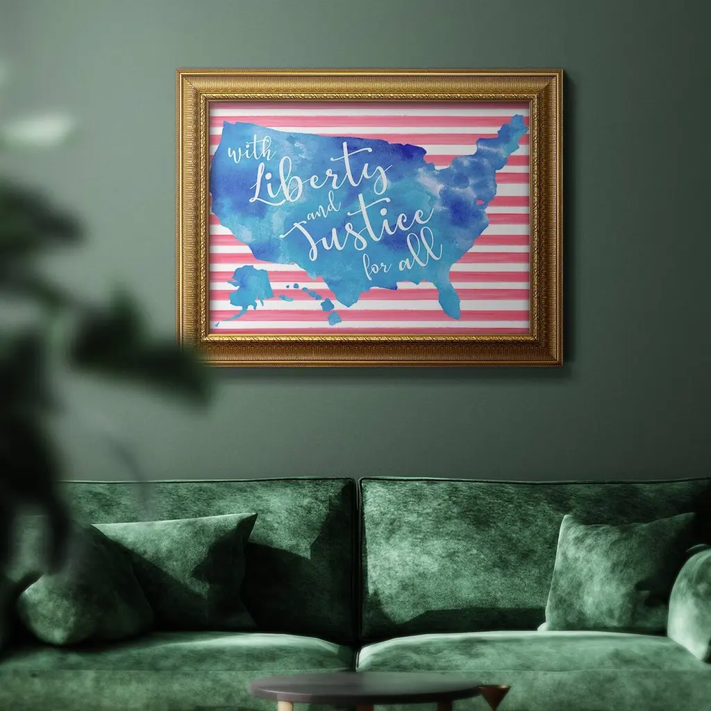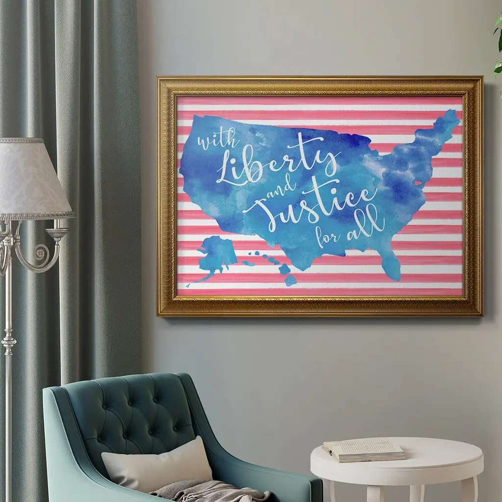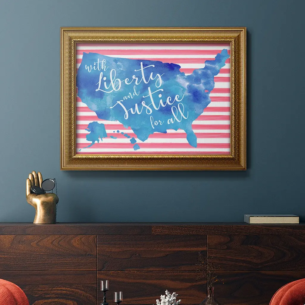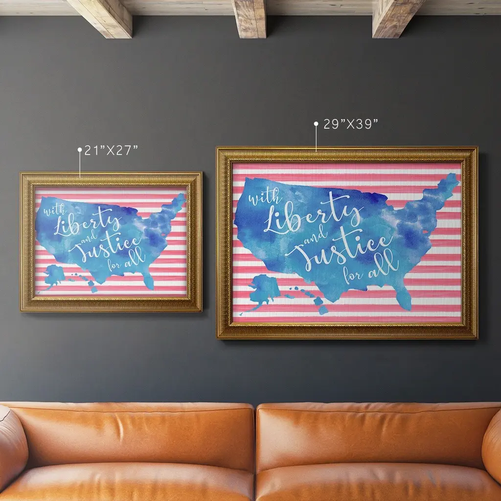 United We Stand I Premium Framed Canvas- Ready to Hang A Premium Framed Canvas created to last. Framed in distressed wood and available in an array of sizes and colors Featuring a beveled a solid wood stretcher bar, each piece comes ready to hand 3 SIZES AVAILABLE 16''X20'' - Overall Size 18'X27'' - Overall Size 24''x36'' - Overall Size Each piece is made to order. Each piece comes with hanging hardware. Made in the USA Ready to Hang Giclee Paper Print Acrylic Glass Beveled Matt Board