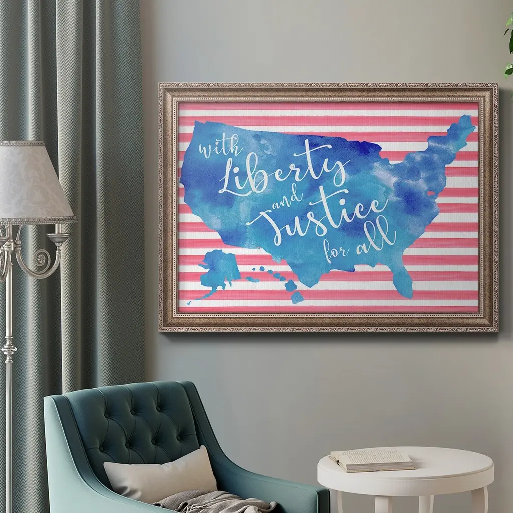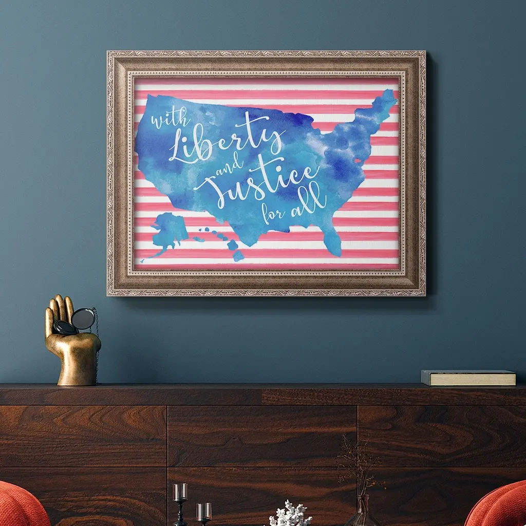 United We Stand I Premium Framed Canvas- Ready to Hang A Premium Framed Canvas created to last. Framed in distressed wood and available in an array of sizes and colors Featuring a beveled a solid wood stretcher bar, each piece comes ready to hand 3 SIZES AVAILABLE 16''X20'' - Overall Size 18'X27'' - Overall Size 24''x36'' - Overall Size Each piece is made to order. Each piece comes with hanging hardware. Made in the USA Ready to Hang Giclee Paper Print Acrylic Glass Beveled Matt Board