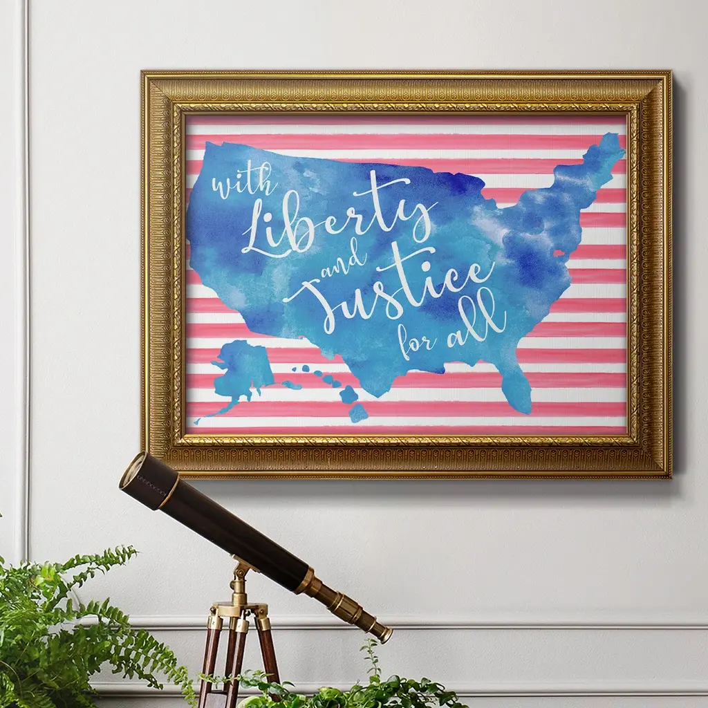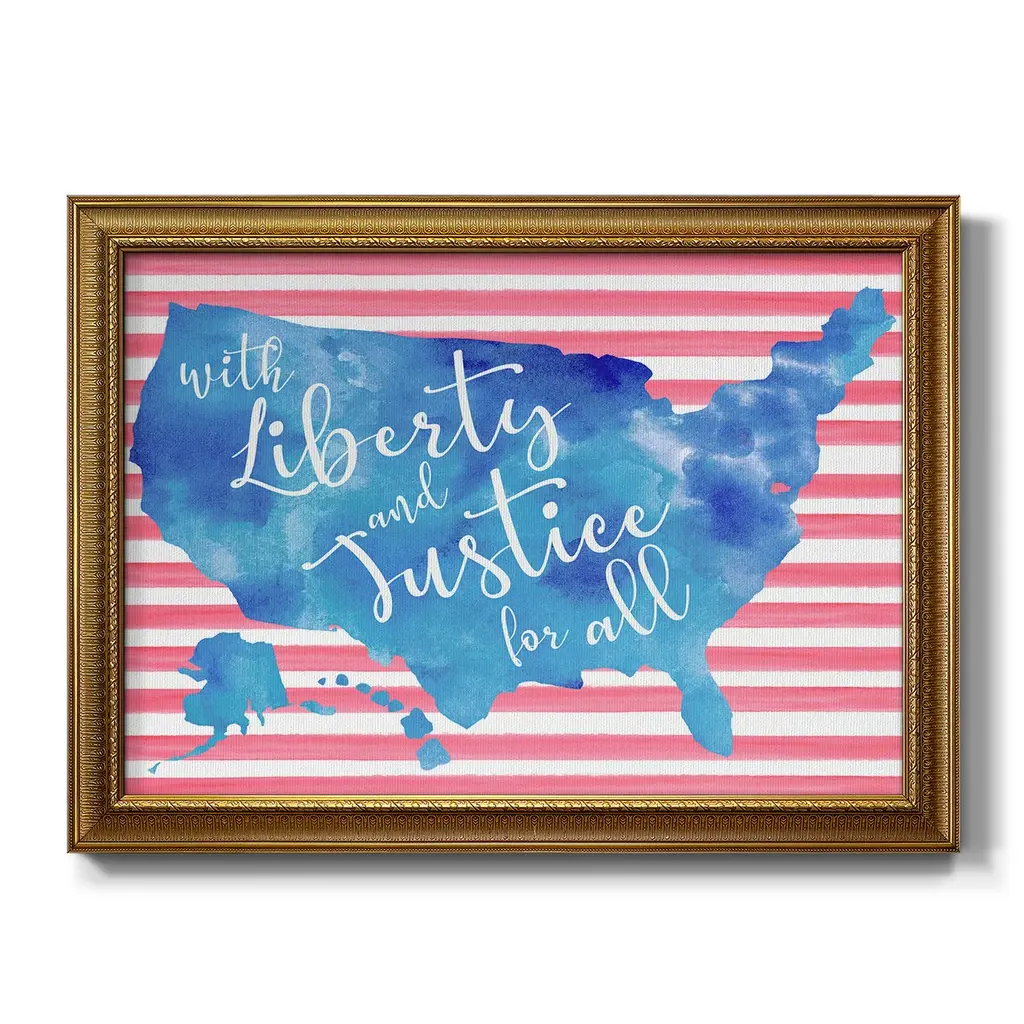 United We Stand I Premium Framed Canvas- Ready to Hang A Premium Framed Canvas created to last. Framed in distressed wood and available in an array of sizes and colors Featuring a beveled a solid wood stretcher bar, each piece comes ready to hand 3 SIZES AVAILABLE 16''X20'' - Overall Size 18'X27'' - Overall Size 24''x36'' - Overall Size Each piece is made to order. Each piece comes with hanging hardware. Made in the USA Ready to Hang Giclee Paper Print Acrylic Glass Beveled Matt Board