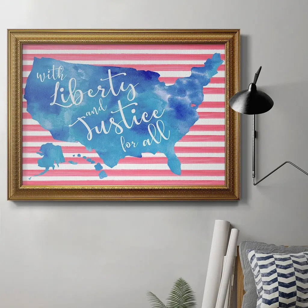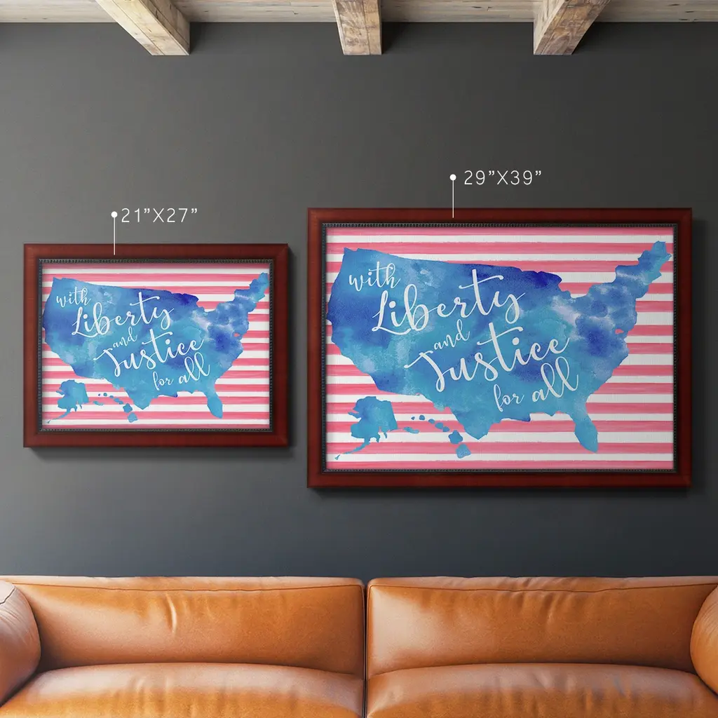 United We Stand I Premium Framed Canvas- Ready to Hang A Premium Framed Canvas created to last. Framed in distressed wood and available in an array of sizes and colors Featuring a beveled a solid wood stretcher bar, each piece comes ready to hand 3 SIZES AVAILABLE 16''X20'' - Overall Size 18'X27'' - Overall Size 24''x36'' - Overall Size Each piece is made to order. Each piece comes with hanging hardware. Made in the USA Ready to Hang Giclee Paper Print Acrylic Glass Beveled Matt Board