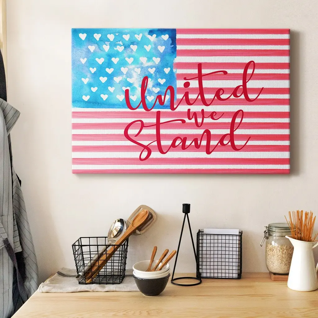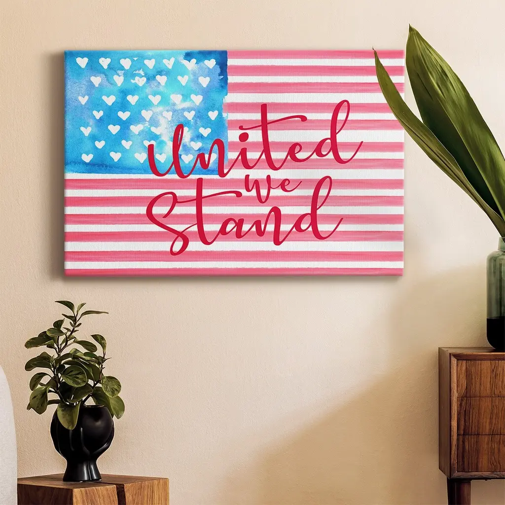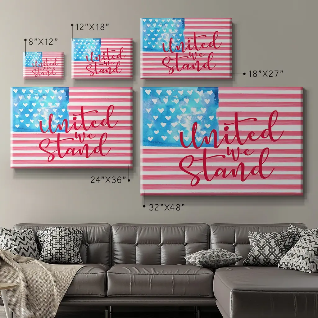 United We Stand II Premium Gallery Wrapped Canvas - Ready to Hang A premium hand stretched gallery wrapped canvas print created to last. Featuring a beveled a solid wood stretcher bar, each piece comes ready to hand 6 SIZES AVAILABLE 8''X12'' - Overall Size 12''X18'' - Overall Size 18''X27'' - Overall Size 24''x36'' - Overall Size 32''x48'' - Overall Size 40''x60'' - Overall Size Each piece is made to order. Built to Last Each piece comes ready to hang Solid wood stretcher Fade and Water resistant Made domestically