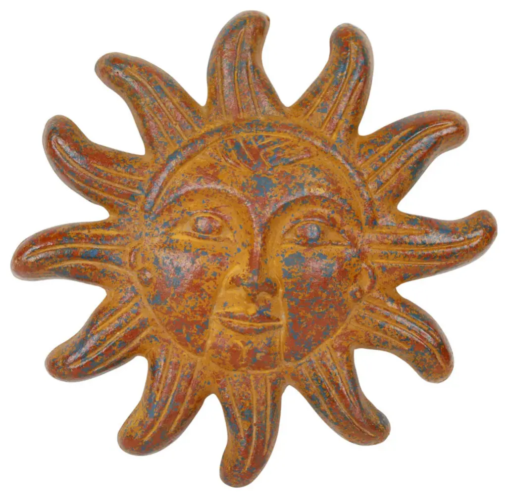 With so many of us enjoying the peace and solitude of our gardens, our Unity clay Eclipse Sun is a beautiful addition to any garden space. It measures about 15 inches in diameter and about 3 inches deep. Each is unique, hand painted so no two will be alike. It''s sheer beauty is that. Keep in mind if placing outdoors in direct exposure to the elements, sealing it with a clear sealer will insure its longevity. Each has a hanger in back so it is easy to hang. To hang, simply use wire loop hanger that is built in to back of sun.