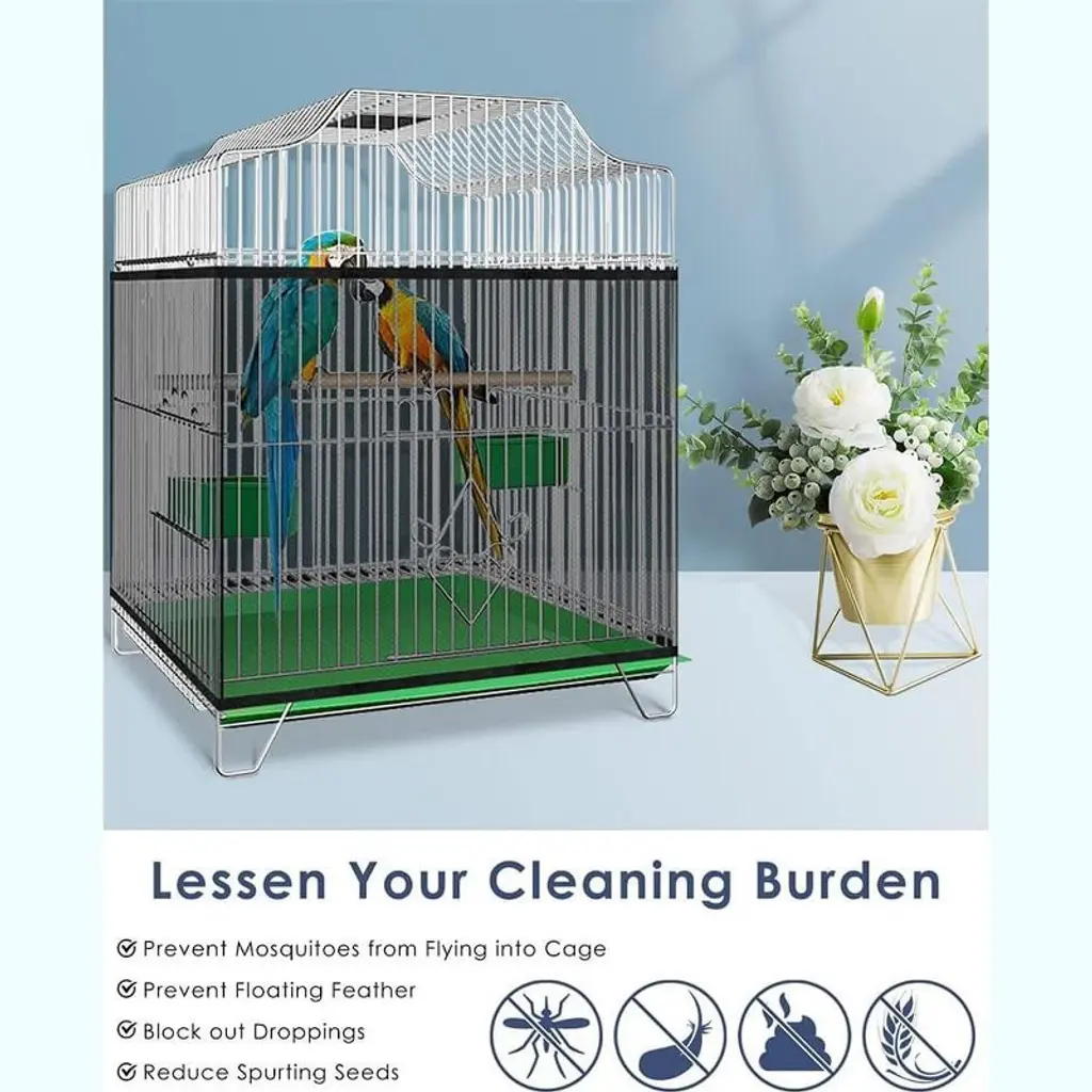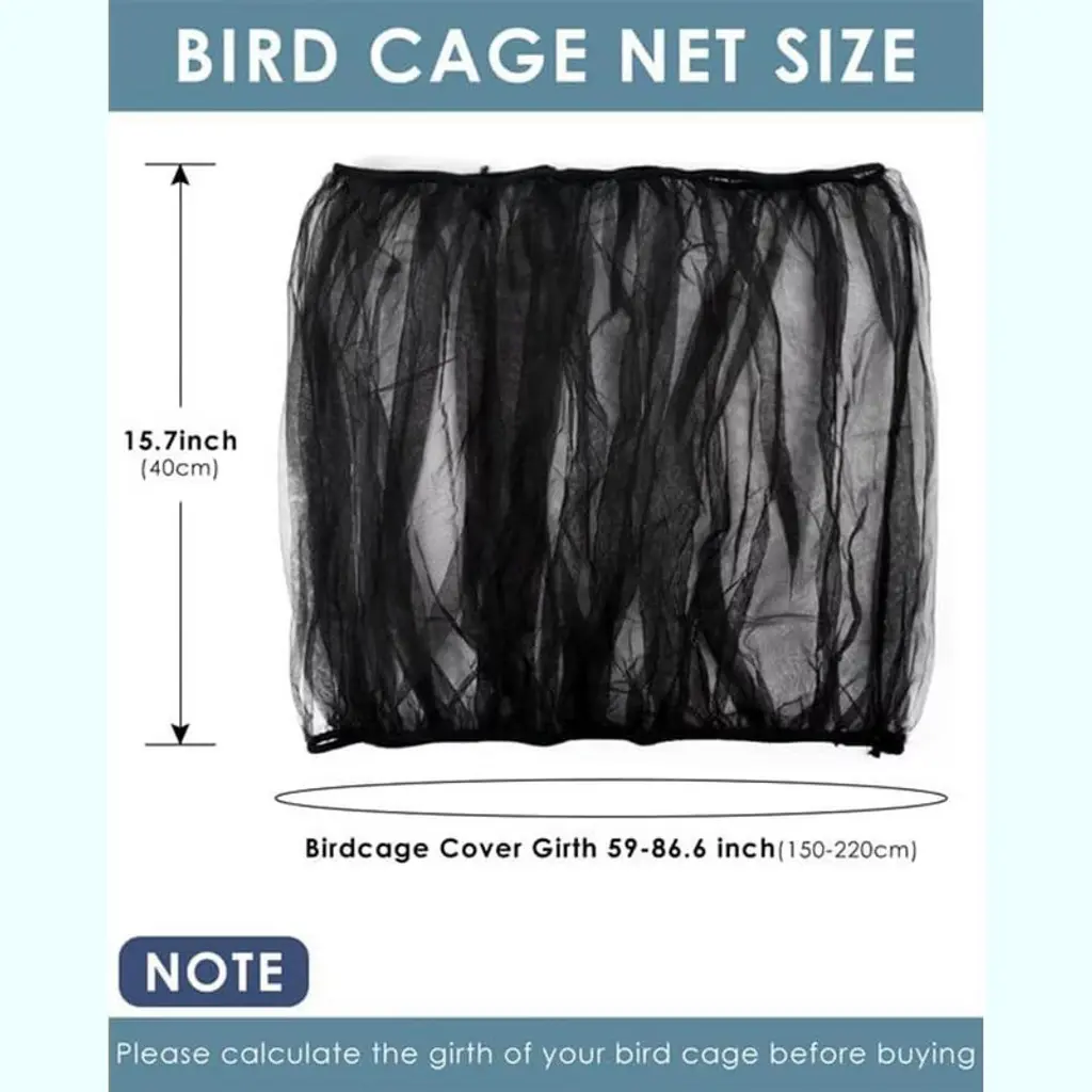 Universal Bird Cage Net Cover, Black Stretch Mesh Skirt With 15.8in Height, Adjustable Breathable Guard For All Cage Sizes