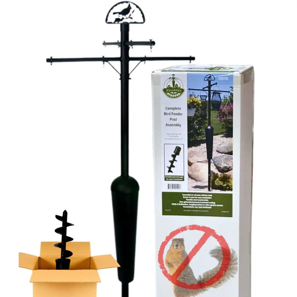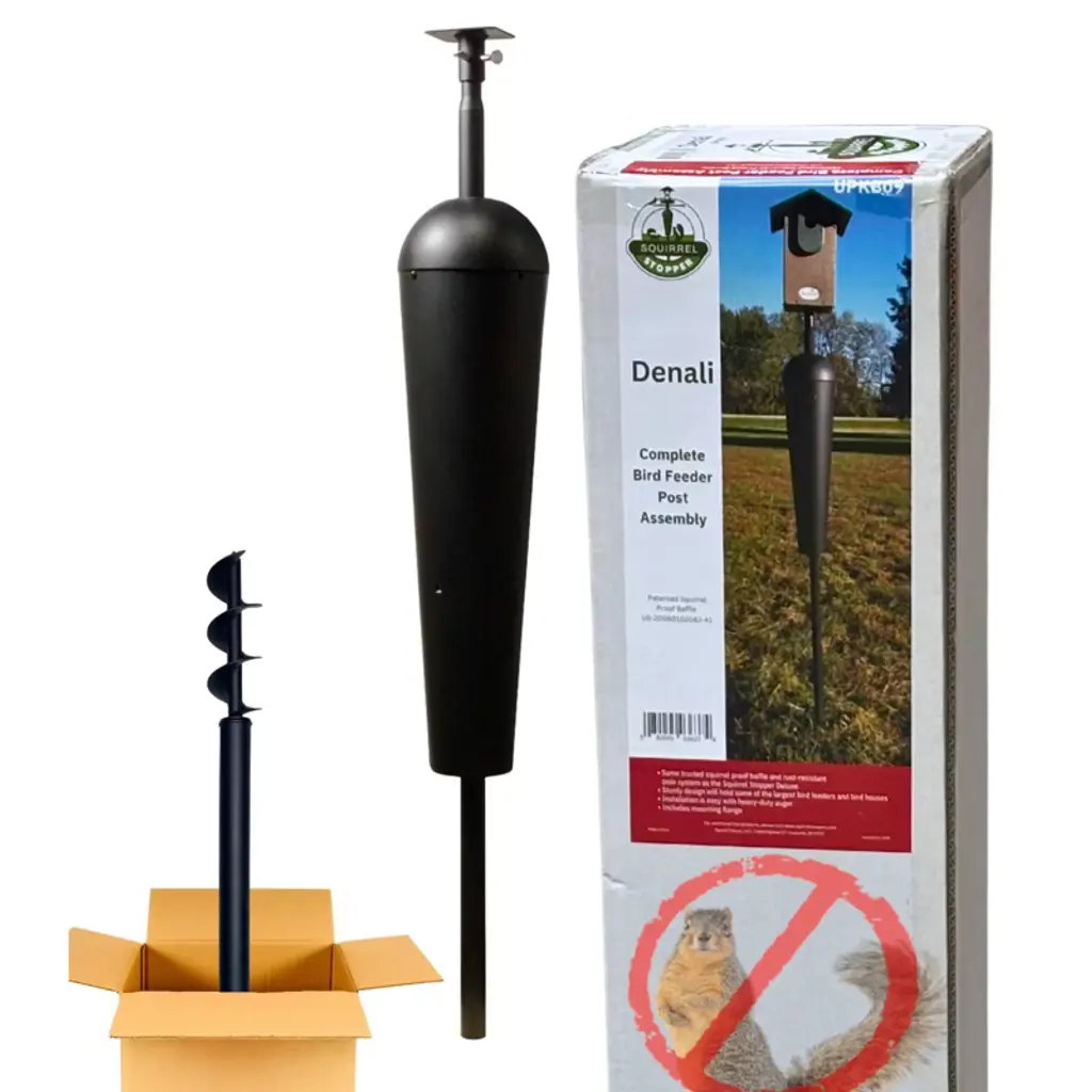 See for yourself why it's called the strongest bird house pole on the market The Squirrel Stopper Universal Pole Kit features a sturdy, rust-resistant design, sure to hold up to even the largest and heaviest birdhouses and birdfeeders. The three sections attach easily and the included heavy-duty auger is the same style made popular by the original Squirrel Stopper Pole System. This mounting pole kit is designed to mount bird houses, bird feeders that can mount from the bottom and another other plate mounted outdoor accessory. We recommend using this pole for our Ultimate Bluebird House, Fly Thru Bird Feeder, Hopper Bird Feeder and Wood Duck House. The Universal Pole is innovative in design, with a 1 1/4" diameter that tapers to the "universal" 1 inch diameter top. The included universal mounting flange allows for an object to be mounted on top or on the side of the flange. If the side mount is used, a plug is included to stop water from entering the pole from the open top mount. The pole stands nearly 5' tall in-ground when installed to the ground sticker marked at the bottom pole section. With the 12" extender, this pole stands nearly 6' tall in-ground With the 24" extender, this pole stands nearly 7' tall in-ground This is not a squirrel-proof pole. Product manufactured in China.