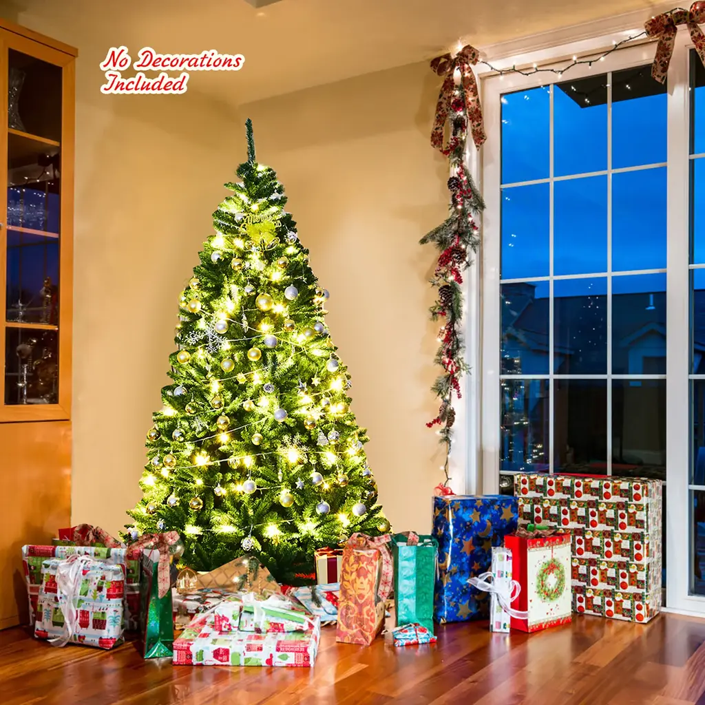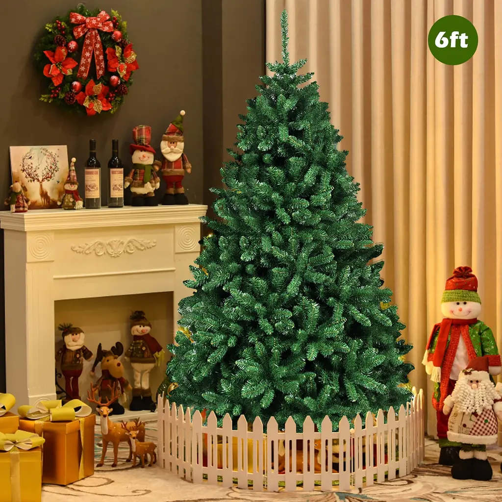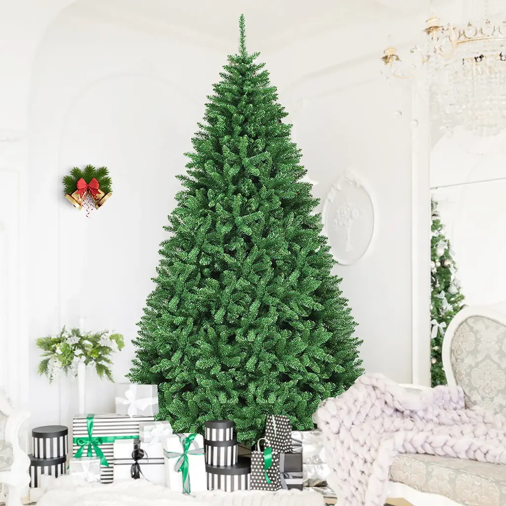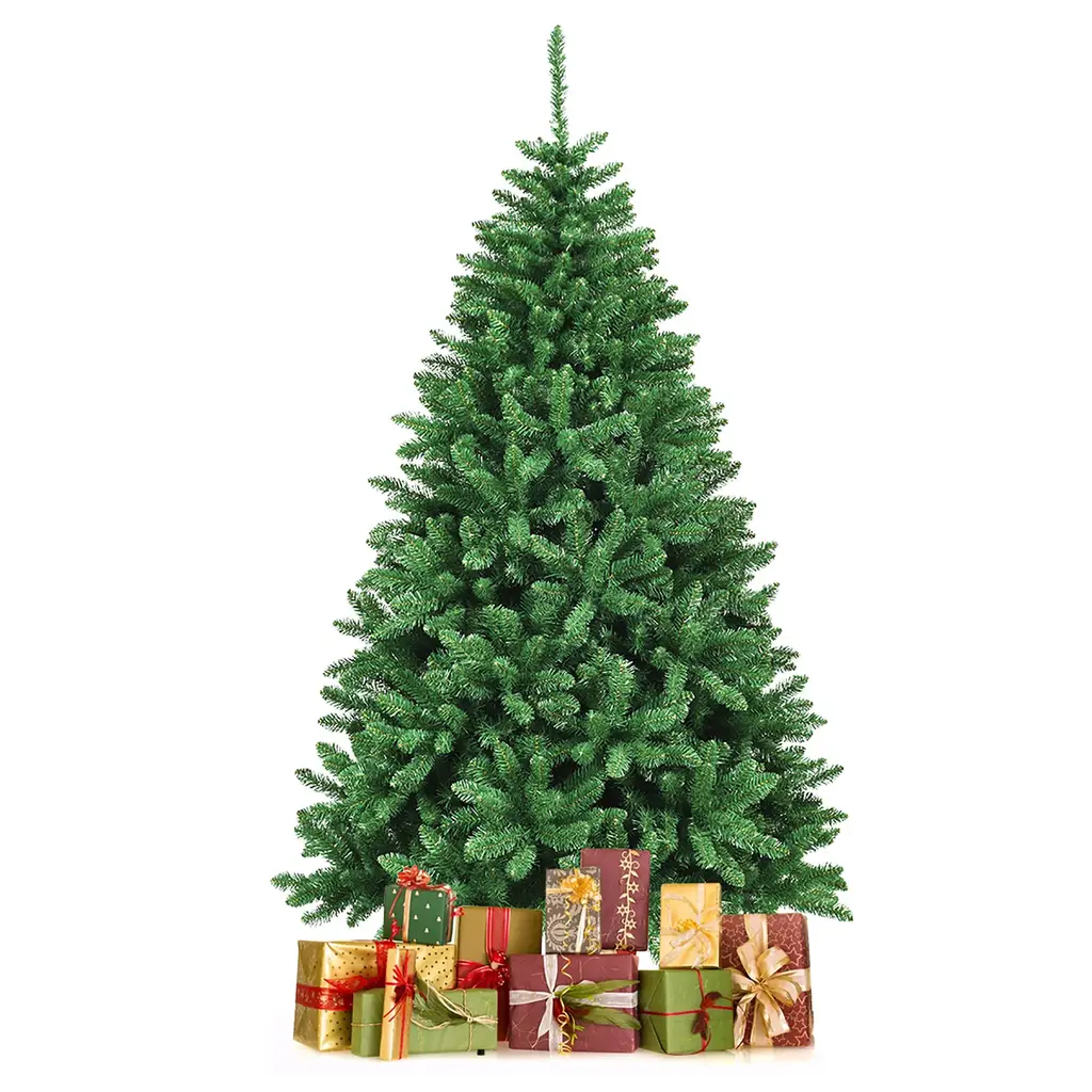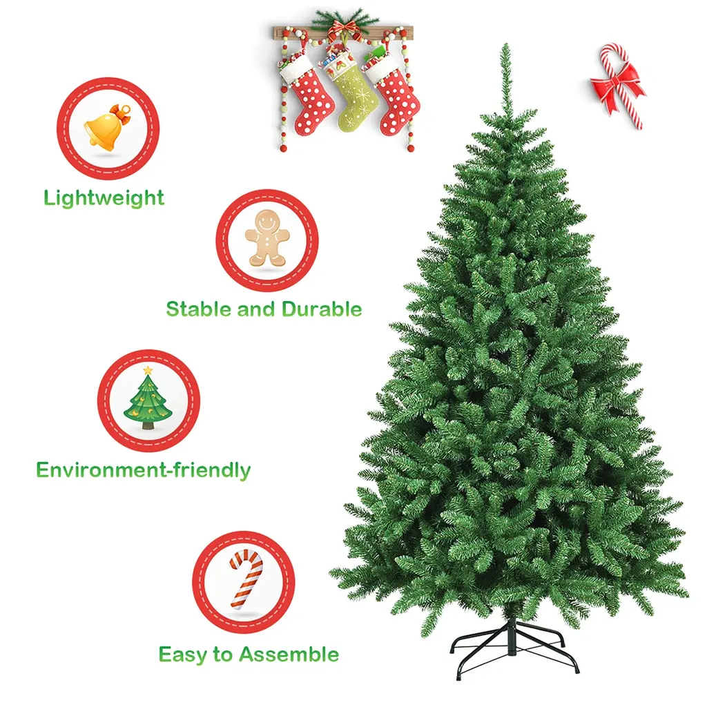 DescriptionOur Christmas tree branches made of PVC are very real, and the branches make it look lifelike. It is sturdy and can be used for a long time. It will be ideal for homes, offices, shops, apartments, etc. Our trees are great quality, making it your best choice.Features Environment-friendly PVC needles for safe useSimple green color and branch tips to create a more genuine Christmas treeHinged tree to expand to the best position, easy to adjustSturdy metal stand provides best support for the treePerfect for indoor decoration at Christmas and can be used to decorate any room in a houseCome in 3 pieces for quick and very easy assemblyEasy to store with portable design SpecificationColor: greenMain material: PVC, ironPackage Includes:1xChristmas tree1xstand 6Ft Christmas TreeOverall Dimensions: Diameter3.6'x6'HNumber of Tips: 1355 tipsNet weight: about 18 Lbs 7.5Ft Christmas TreeOverall Dimensions: Diameter4.2'x7.5'HNumber of Tips: 2254 tipsNet weight: about 30 Lbs 9Ft Christmas TreeOverall Dimensions: Diameter5.1'x9'HNumber of Tips: 3594 tipsNet weight: about 46 Lbs