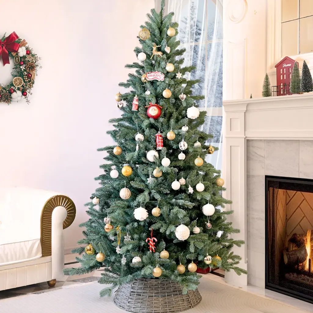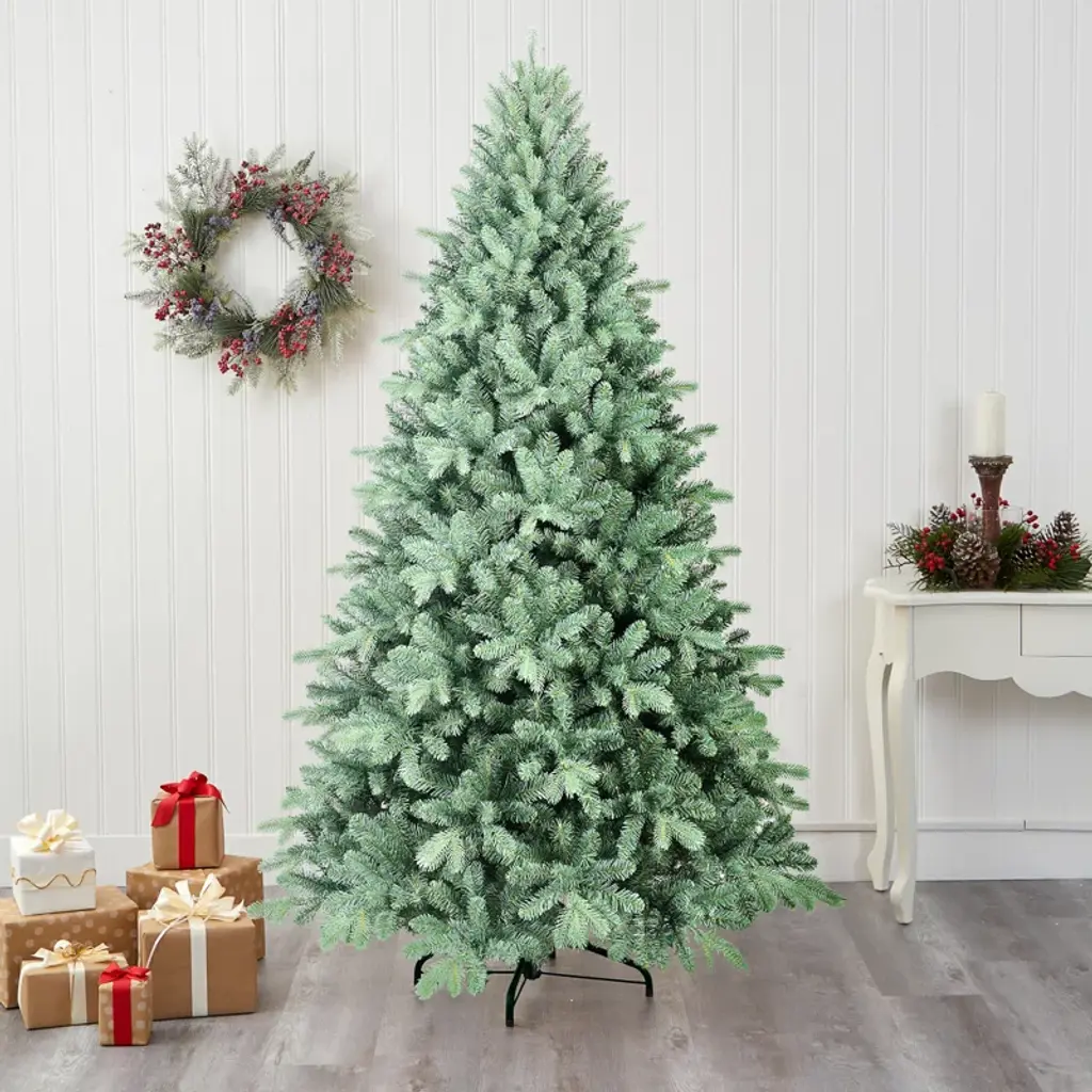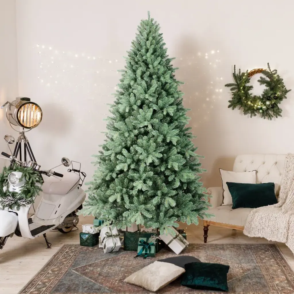 This blue spruce artificial Christmas tree with lights is made from a high-quality mix of PE and PVC branches, ensuring flame-retardant and durability with a classic, traditional appearance. Its hinge structure is built to last, allowing the branches to easily unfold and fold back