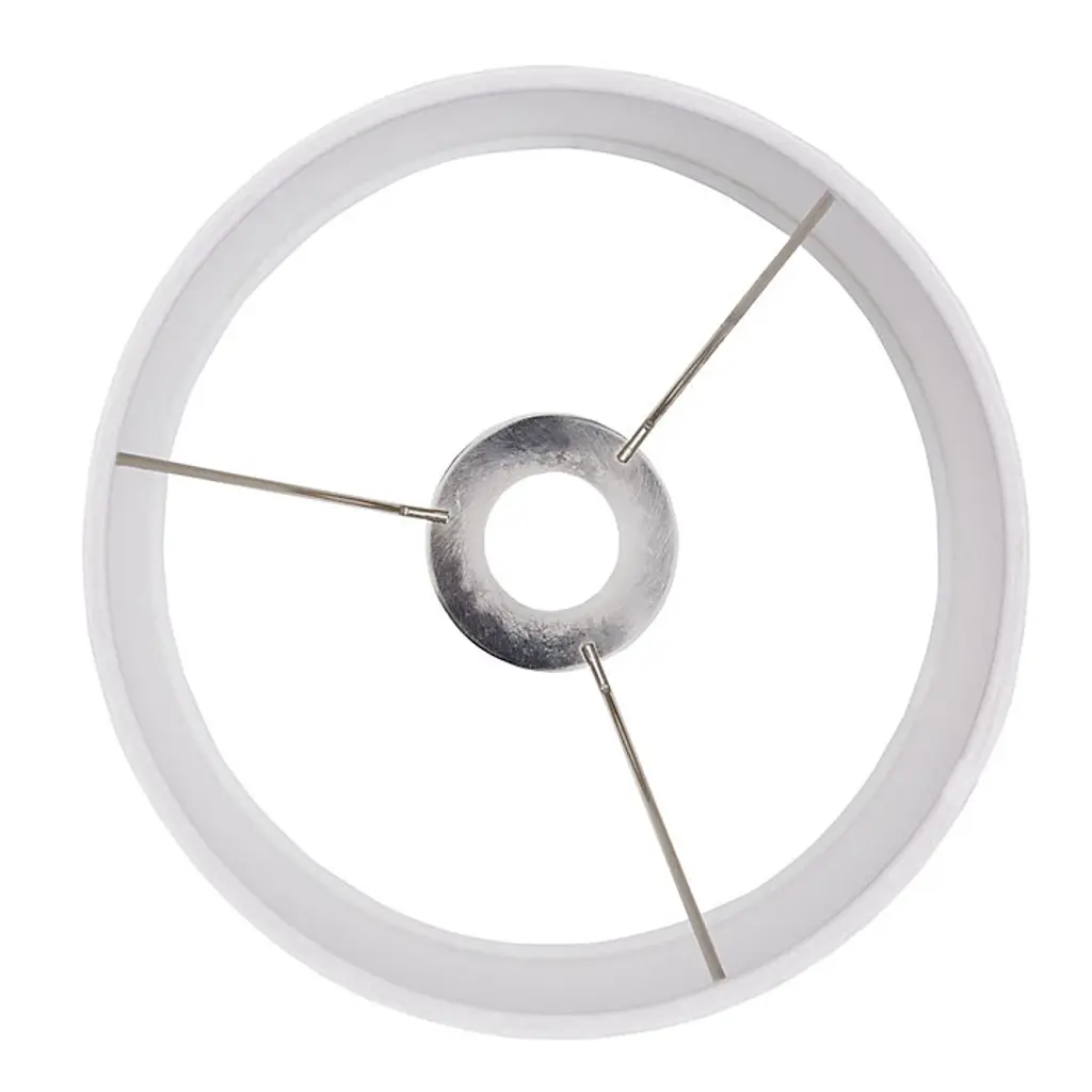 We designed this stylish 8-inch drum shade to pair with our favorite petite accent lamps. The classic drum silhouette is made of white fabric and hand finished with a polished nickel uno clip that slips over your lamp’s socket, so you don’t need a traditional harp or finial. Uno Fit 8” Drum Shade features: