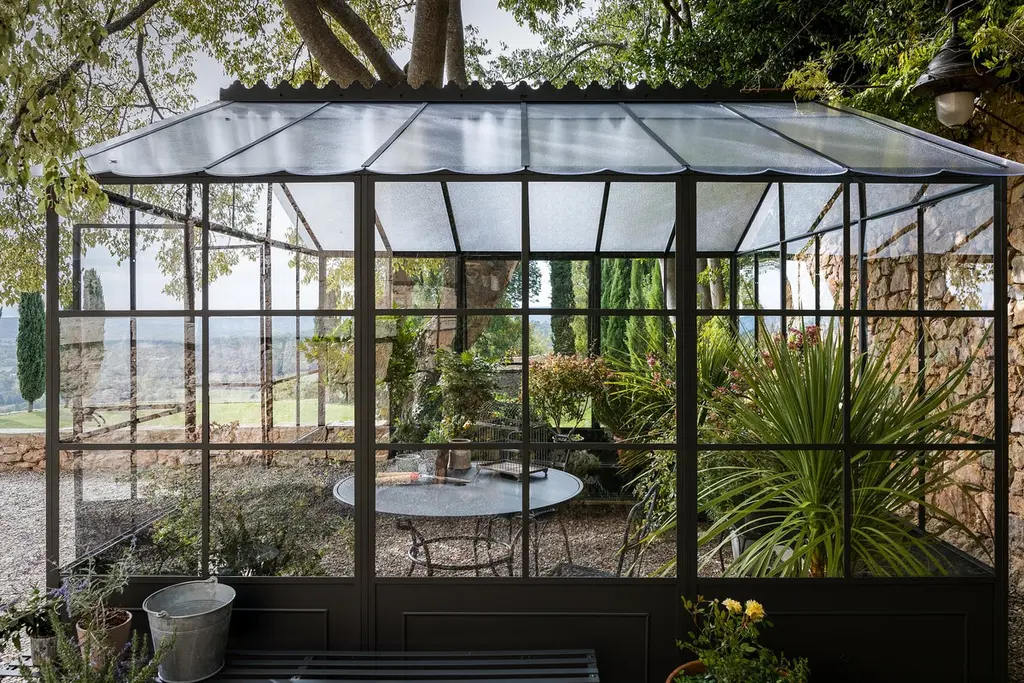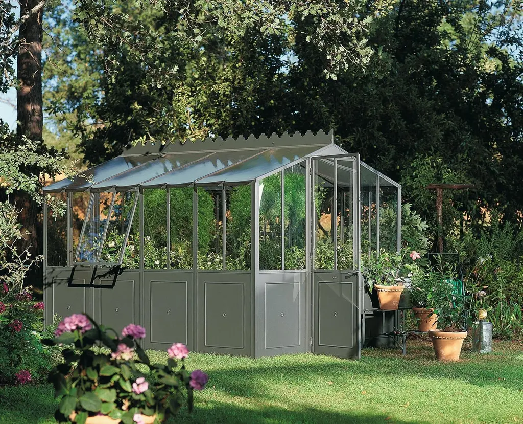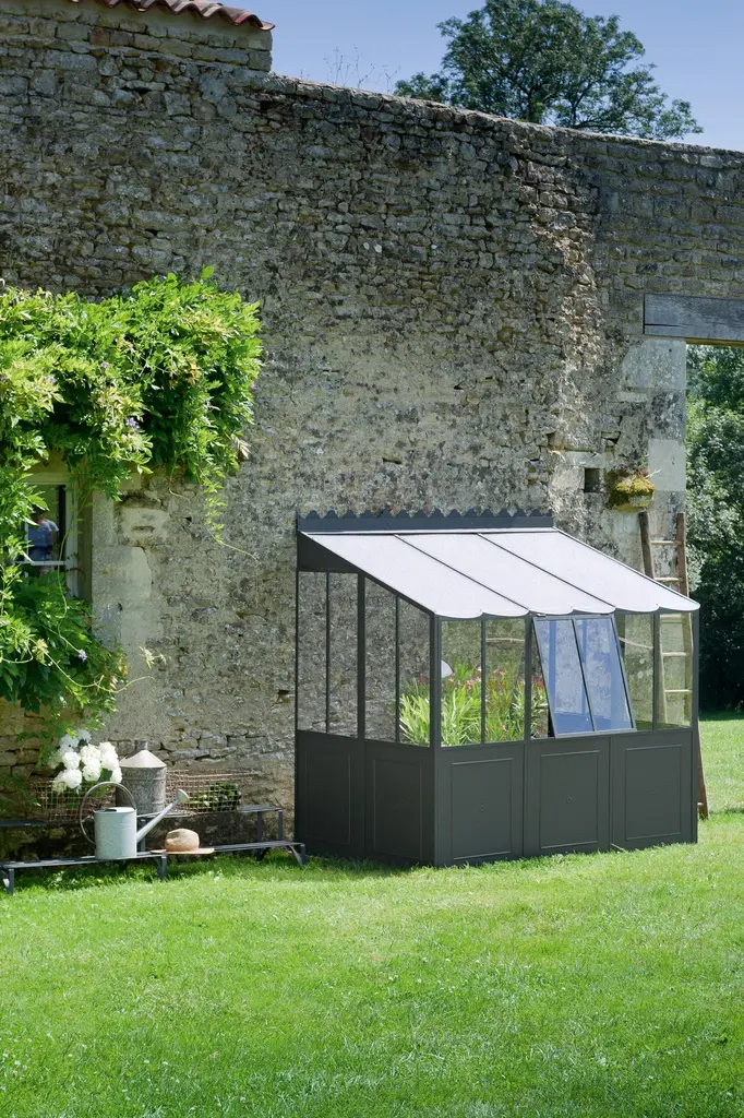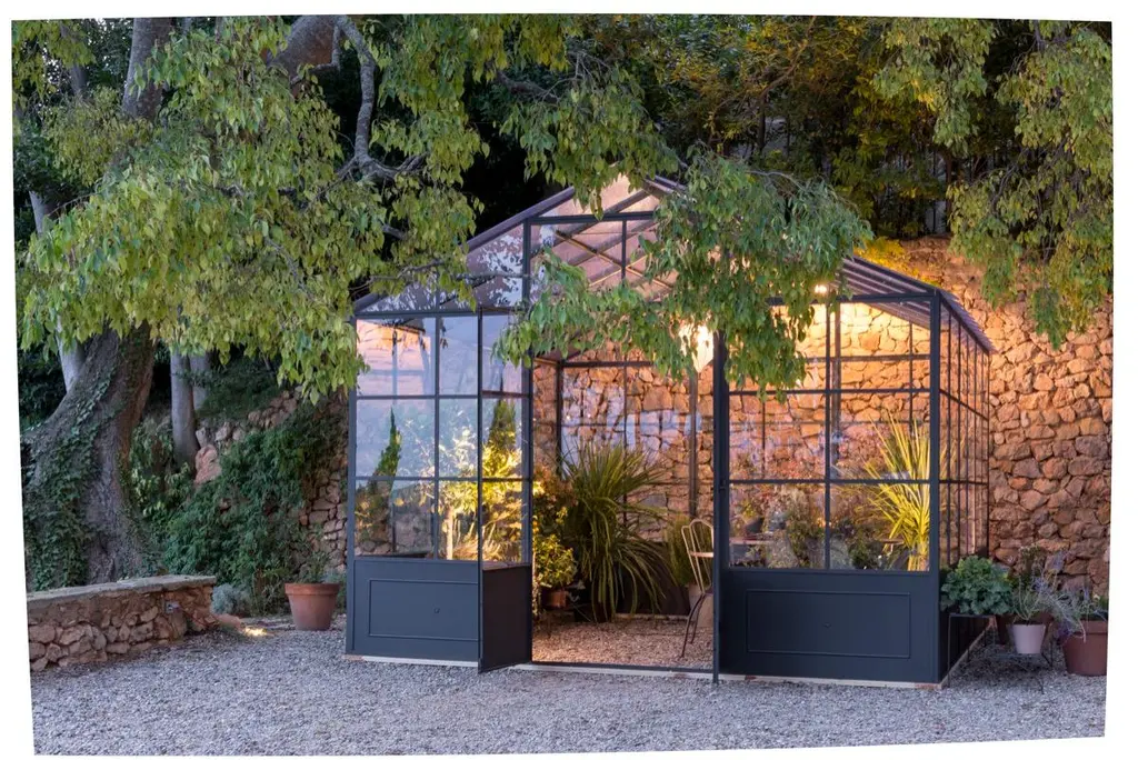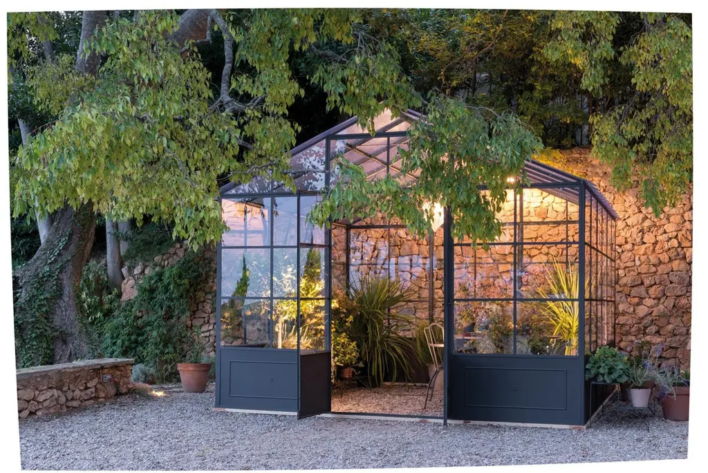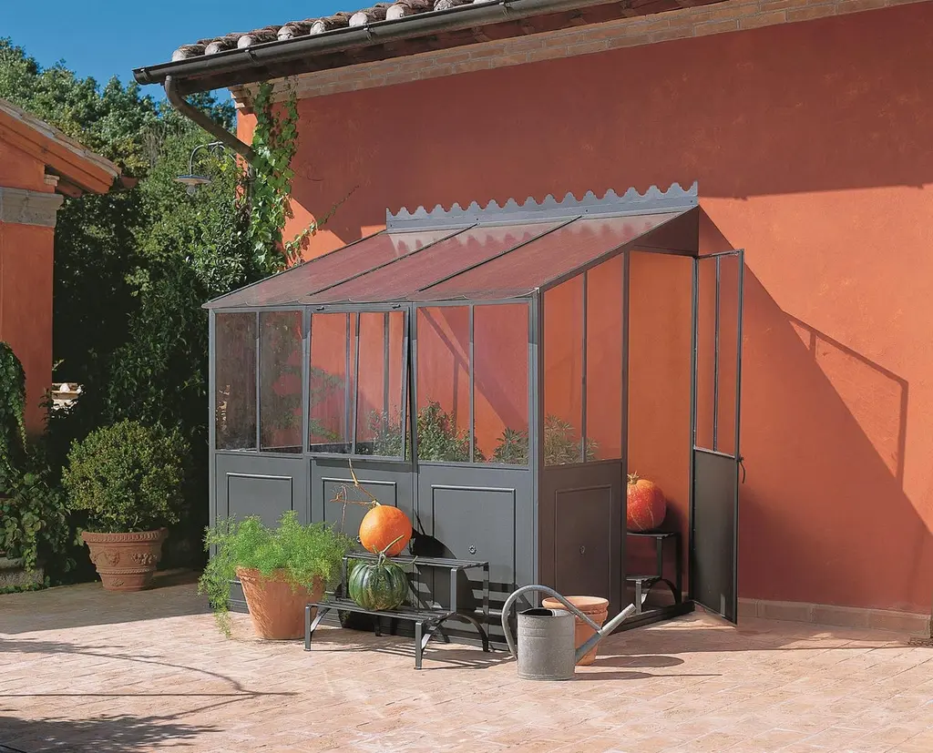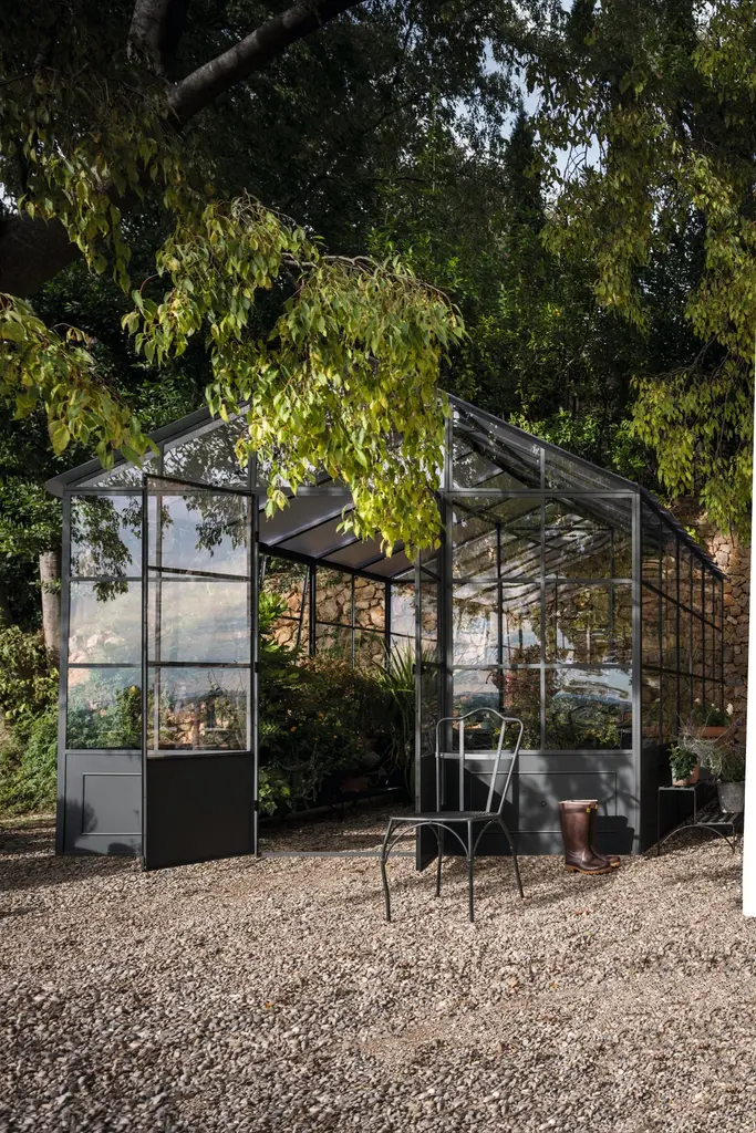 Orangerie is a classically inspired greenhouse system made from galvanised and powder-coat- ed iron with a polycarbonate covering designed to recreate a green environment that is ideal for growing and nurturing plants outside their natu- ral environment.Offered in two models, free-standing and wall-mounted, it can adapt to any space. The structure features large polycarbonate surfaces, which are effective at allowing natural, continuous lighting inside. Most of them can be opened to allow the regulation of air flow and to ensure ventilation for the plants.