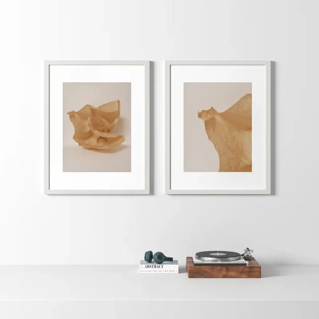 Unpacking perception. Seeking beauty in the ordinary, fine art photographer Svetlana Smirnova transforms simple packing materials into sculptural explorations of color and form. This two-piece set is printed on premium paper and arrives in wooden frames with included hanging hardware.