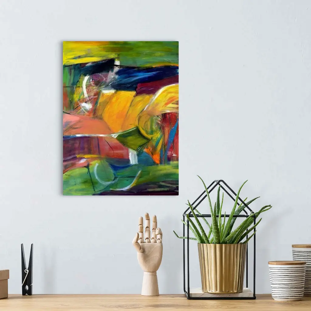 Originally painted with mixed media and acrylic on canvas.
