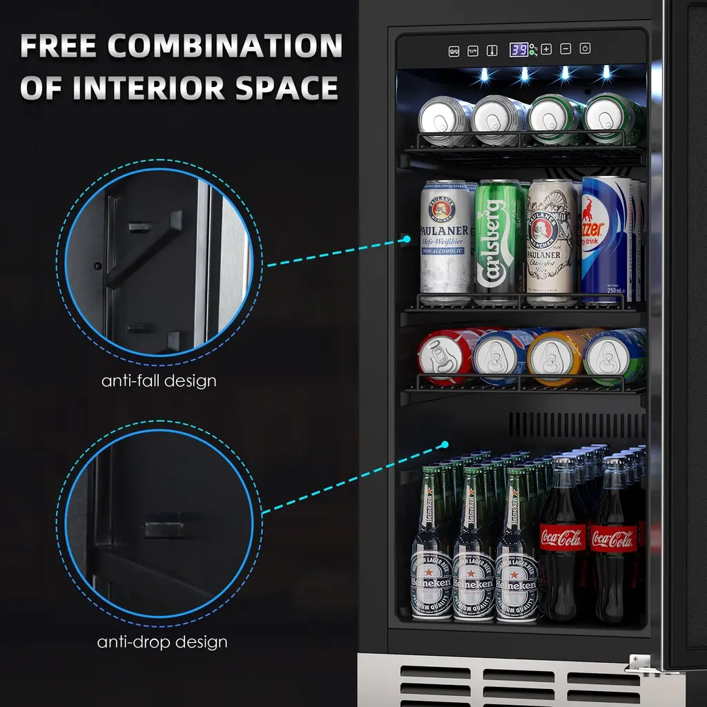 Up To 96 Cans Beverage Cooler Refrigerator Soda Drink Mini Fridge Built-In Or Freestanding Frost-Free - Yc-100a-15in