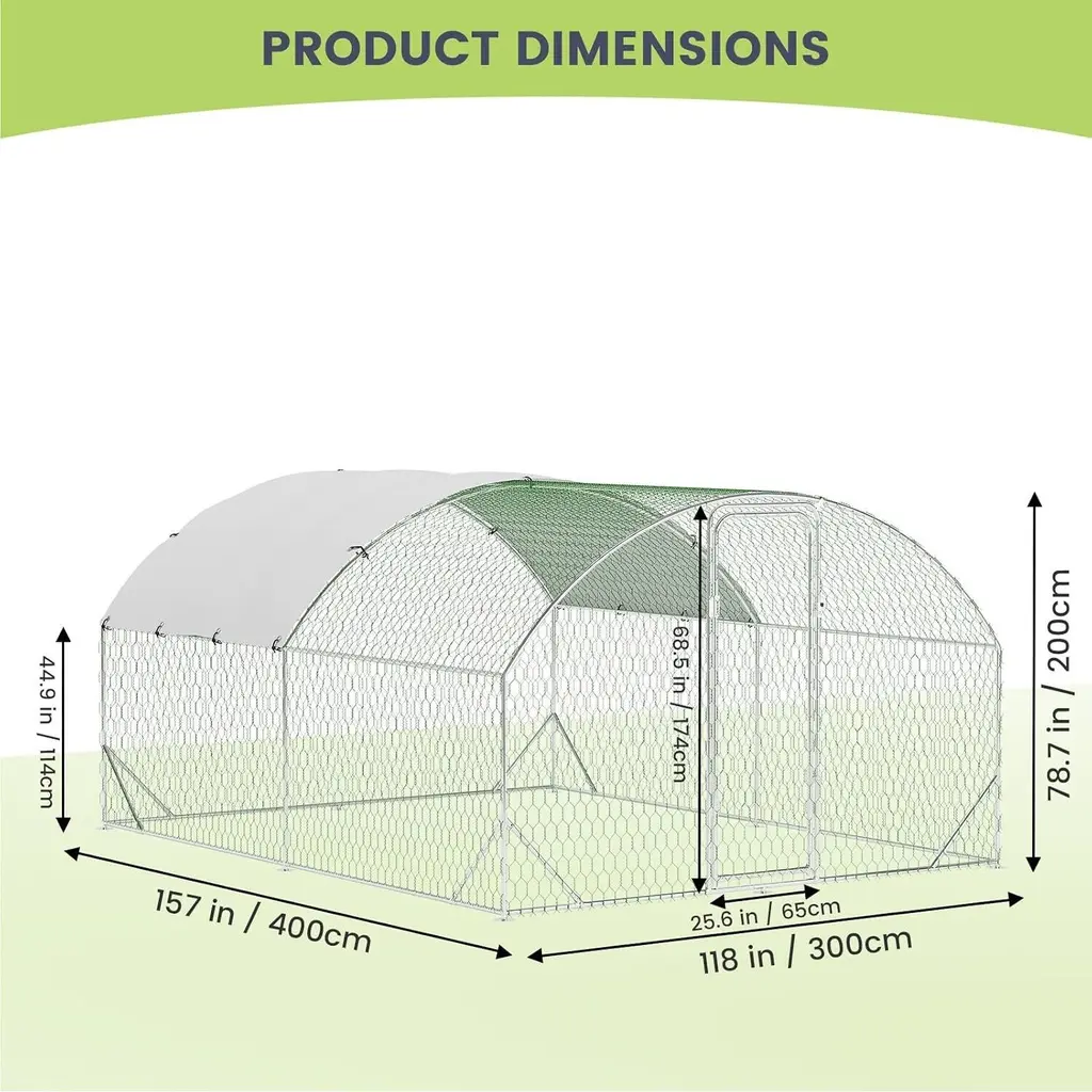 Upgrade Metal Chicken Coop Run, Waterproof And Anti-Uv - 13.1'l X 9.8'w X 6.6'h