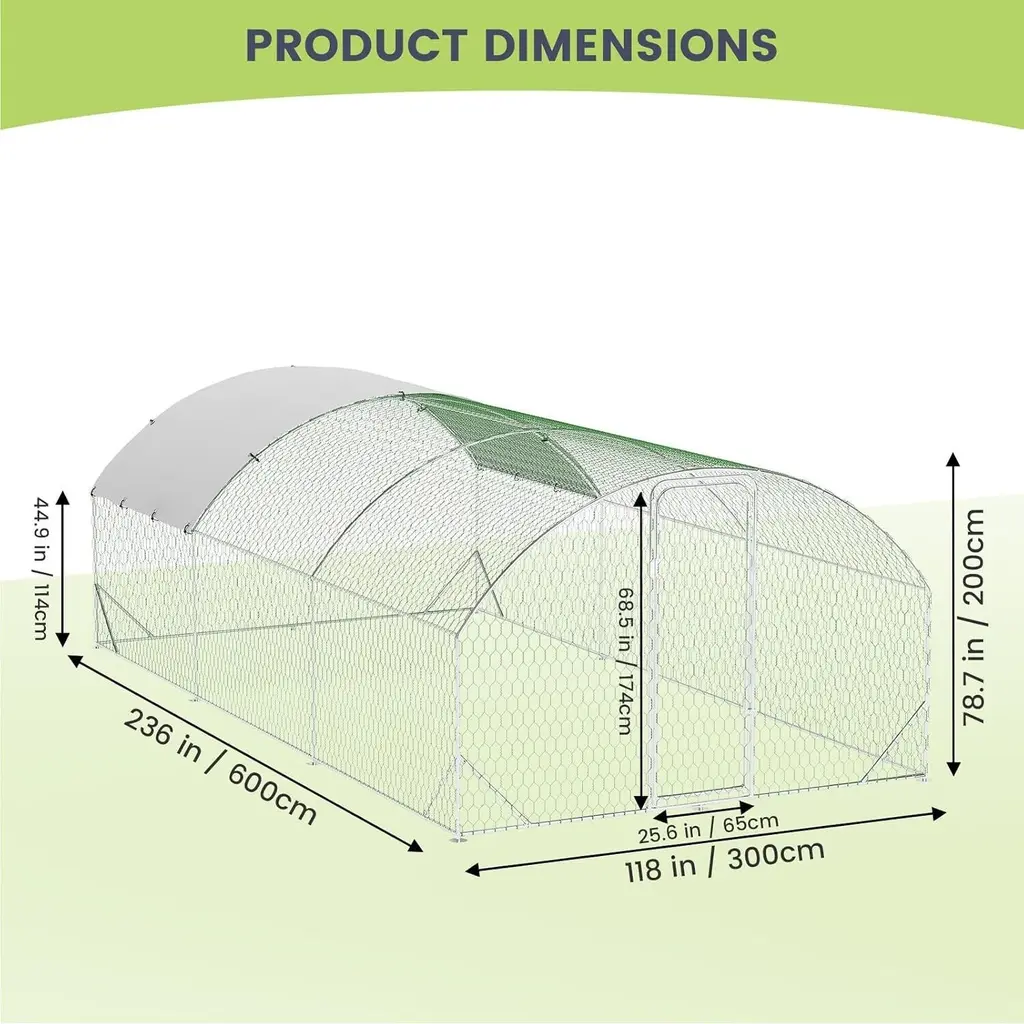 Upgrade Metal Chicken Coop Run, Waterproof And Anti-Uv - 19.7'l X 9.8'w X 6.6'h