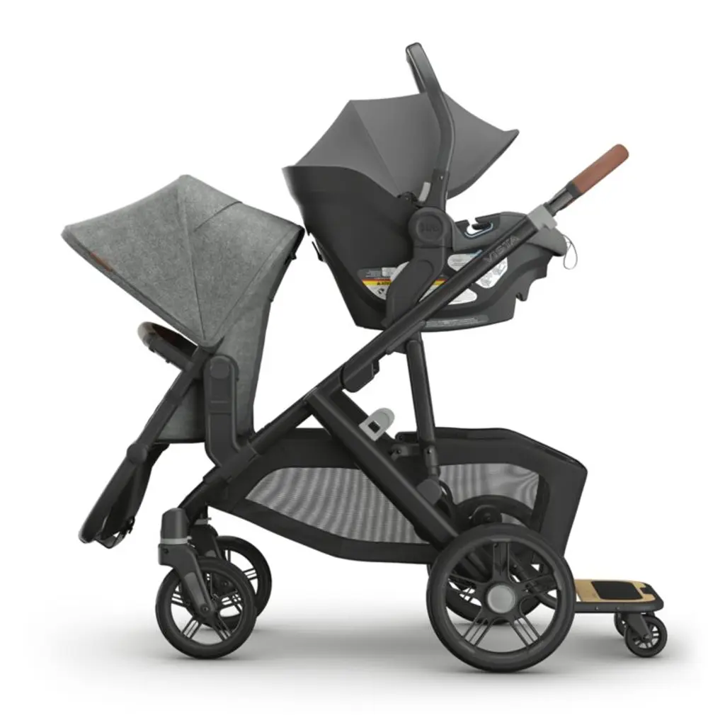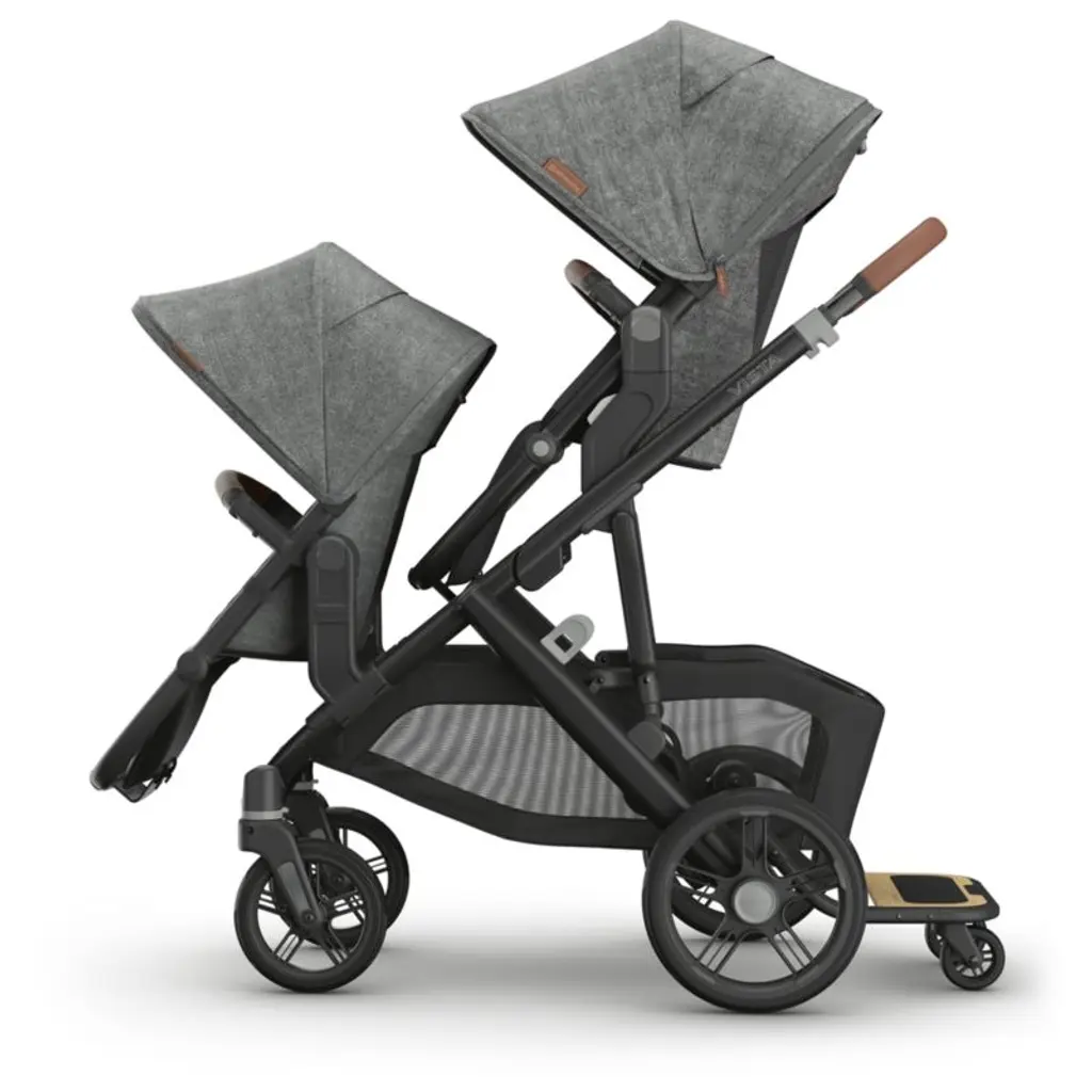 Pop the UPPAbaby® RumbleSeat V3 onto the front of your Vista stroller, and you've got a streamlined, tandem ride for 2. Suitable from the newborn to toddler stages, it works in both a forward- and parent-facing position. And while it looks sleek, it offers a laundry list of comfortsincluding a seasonal seat liner and multiple reclining positions, plus an adjustable footrest, headrest and sun canopy to grow with your child.