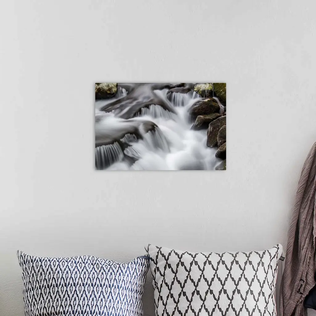 Multi-layered waterfall in a rushing river in the Blue Ridge Mountains.