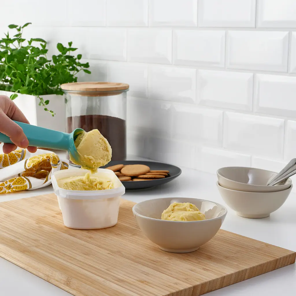 UPPFYLLD Ice-cream scoop - turquoise. With this scoop you can serve perfect ice-cream balls to your guests. Simple to clean – just put it in the dishwasher. Wash this product before using it for the first time.