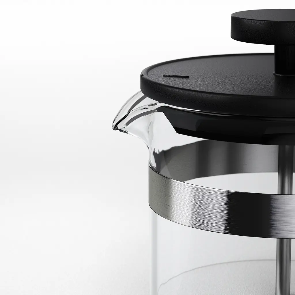 UPPHETTA French press coffee maker - glass/stainless steel 34 oz. Pour hot water over ground coffee beans or tea leaves, push down the strainer and serve straight from the French press coffee maker. Can be taken apart for easy cleaning. Wash this product before using it for the first time.