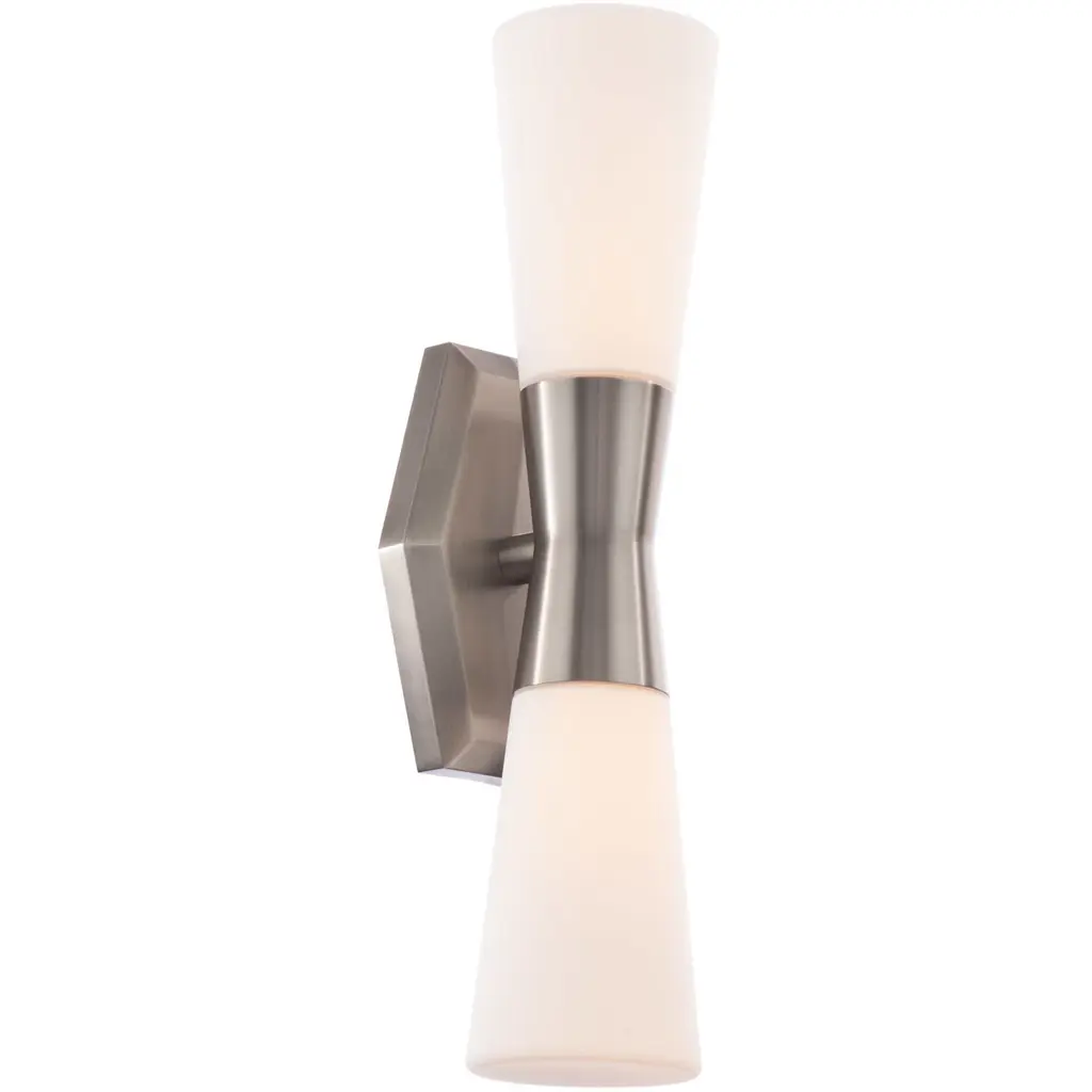 Upton hearkens back to late-forties France, as conical shapes found their way into lighting fixtures and mid-century modern began to take form. Its weighty faceted arms are cast from molten metal and the frosted glass of its shades is mouth-blown. A thick stepped backplate completes Upton’s sense of subtle luxury.