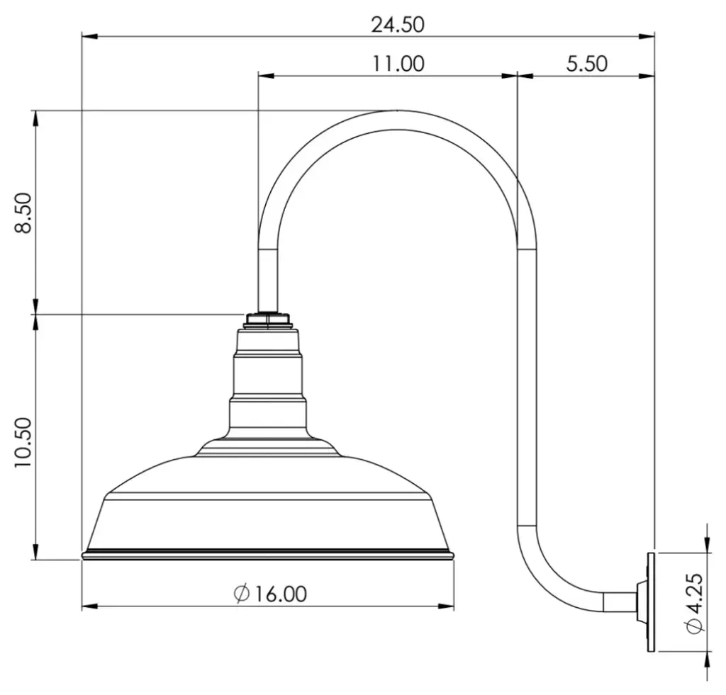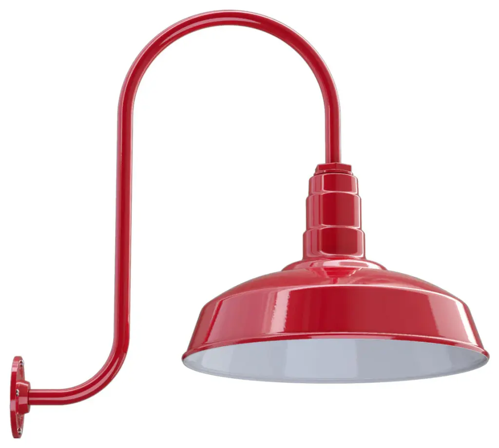 Handcrafted indoor and outdoor barn light made from 18-gauge American steel and built to stand the test of time. This upward-sloping gooseneck wall fixture is powder-coated for increased durability and rust protection and manufactured by our team here in Southern California with genuine quality and craftsmanship. This light fixture comes with an E26 medium base socket, allowing it to be turned into an LED barn light, or a traditional-style incandescent gooseneck barn light. It''s the perfect shape to highlight porches, windows, garages and peaks of barns and farmhouses.