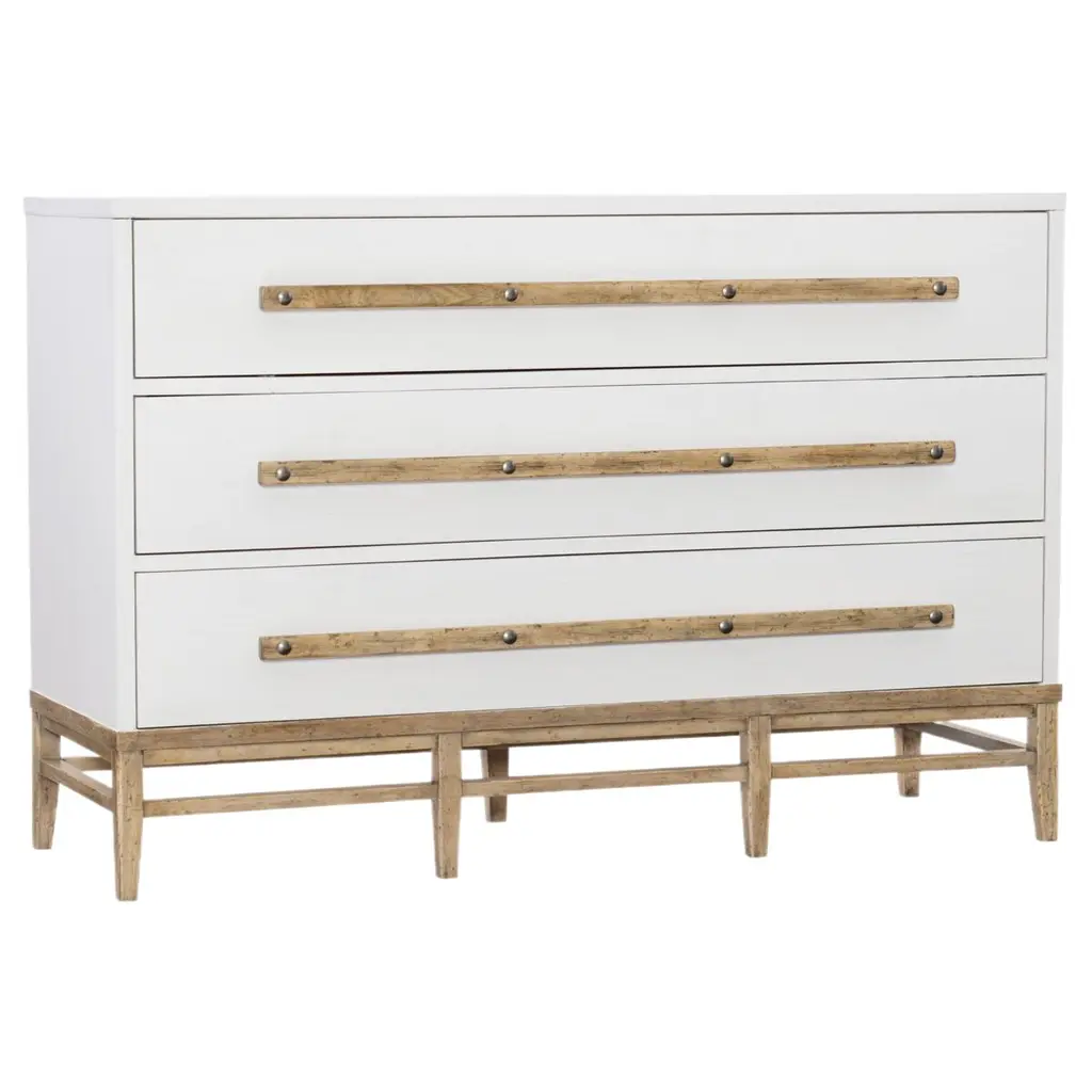 The white plaster finish of the American Life Chest offers a striking contrast with the Maple base and Maple hardware with rustic bolts for a rustic luxe focal point in your home. Three drawers, with the top two drawers offering 2 removable dividers and the bottom drawer offering one removable divider that is cedar-lined. Crafted of Maple, White Oak and Cedar Veneers with a Solid-Wood Edge top.