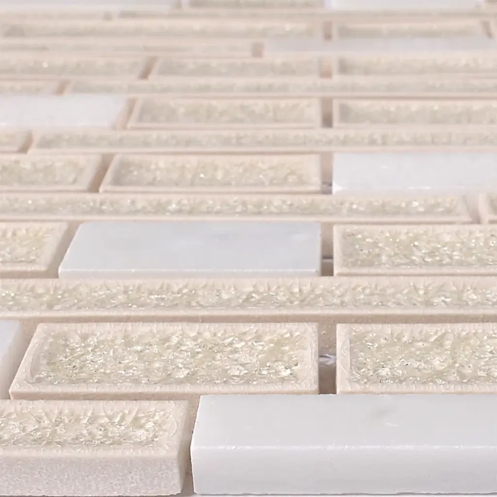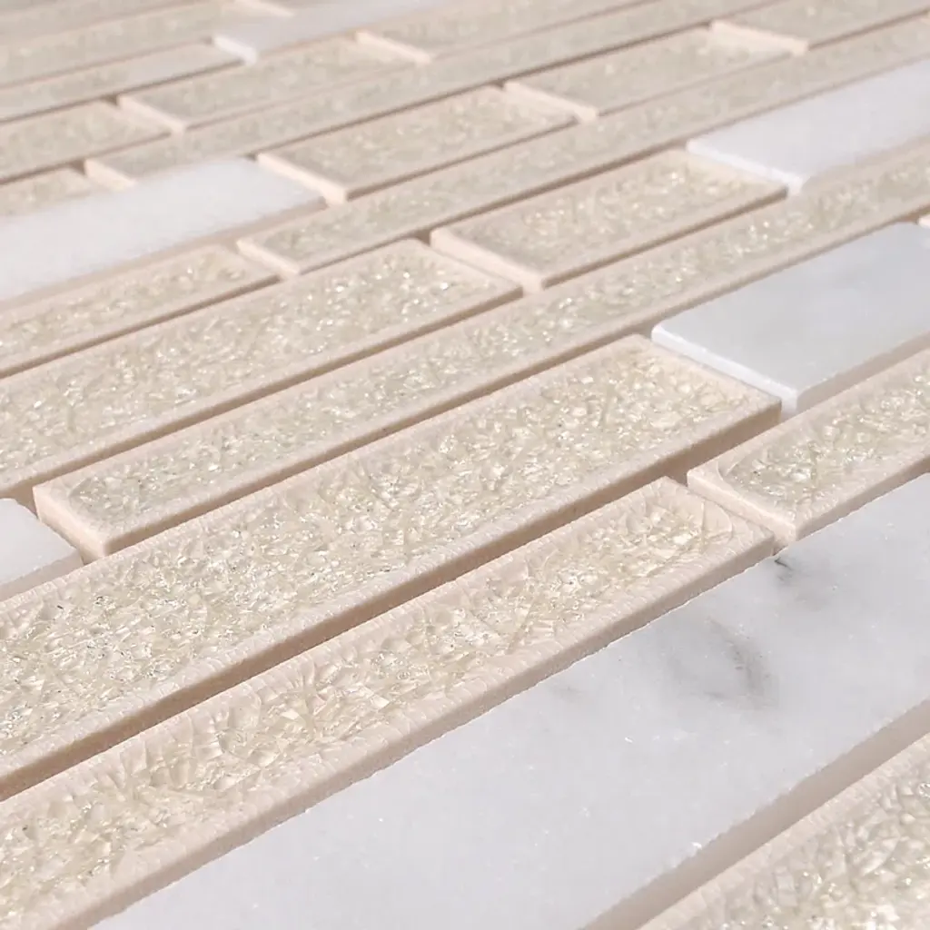 Urban Random Sized Crackled Glass & Stone Linear Mosaic Wall Tile