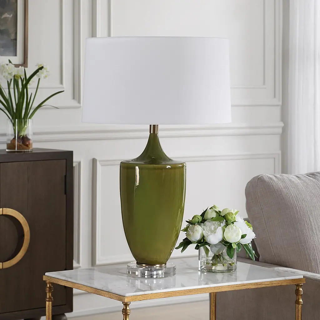 Urn Shaped Base Table Lamp With Tapered Shade - 28.75" - Green - Green