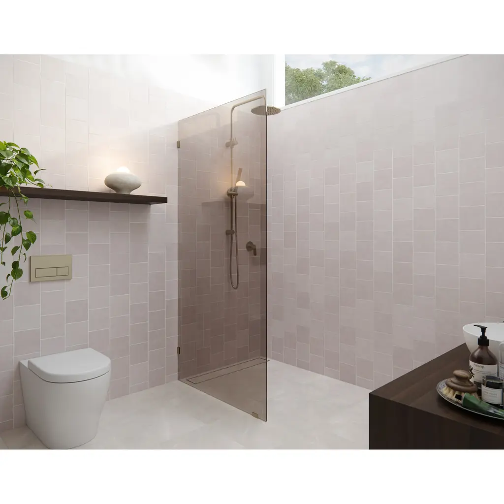 Ursa 30 In. X 78 In. Fully Frameless Glass Shower Panel - Single Fixed Panel With Bronze Tint - Brushed Bronze