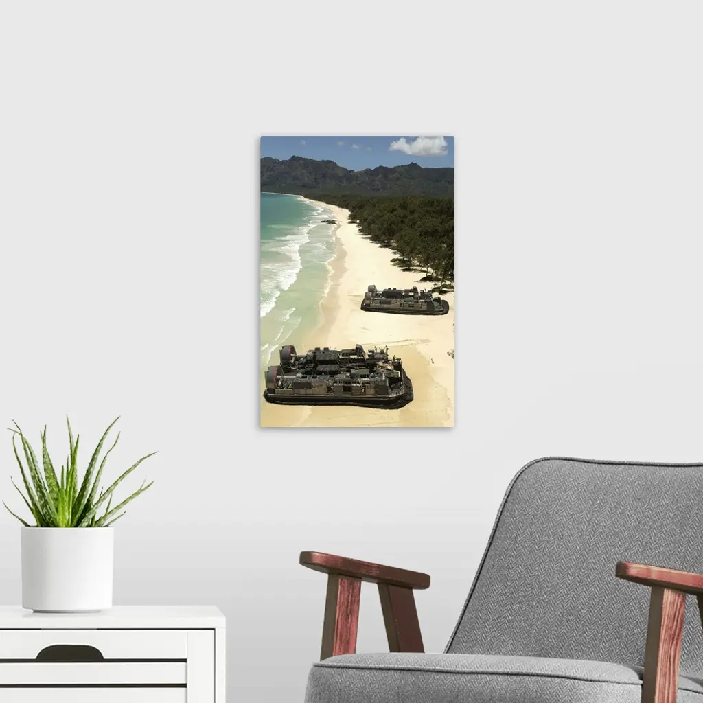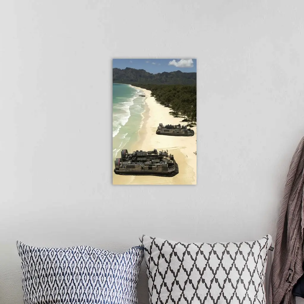 US Navy Landing Craft land on the beach to offload equipment in Oahu Hawaii wall art for home and office decor. Discover canvas art prints, photos, mural, big canvas art and framed wall art in GreatBigCanvas.com's varied collections.