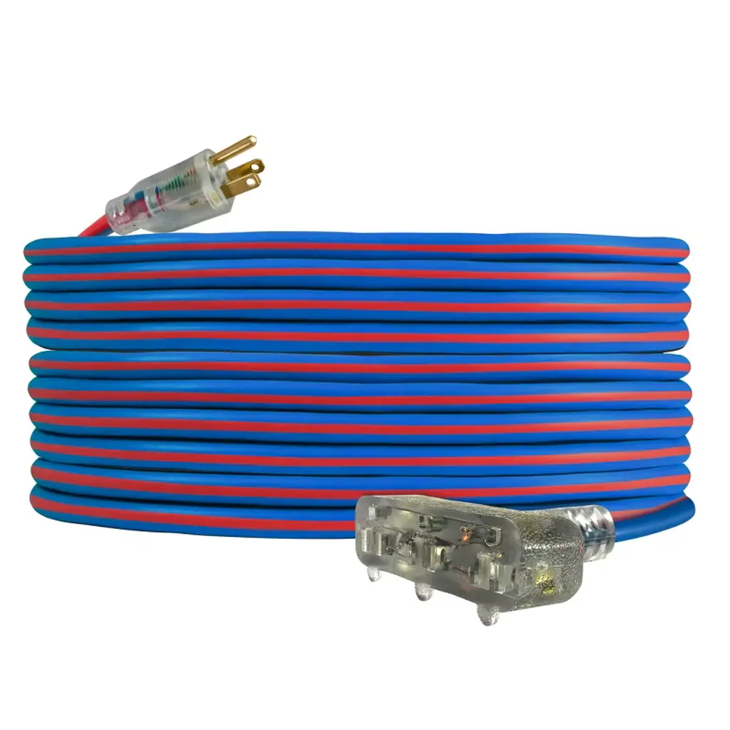 The EXTREME All-Weather extension cord is constructed of 100% TPE (thermo-plastic elastomer) compound which guarantees maximum flexibility in EXTREME temperatures. Tested in the harshest Alaskan weather conditions, the cords remain flexible down to -94°F! Extreme cords are oil resistant and feature a lighted triple outlet female plug for multiple connections.