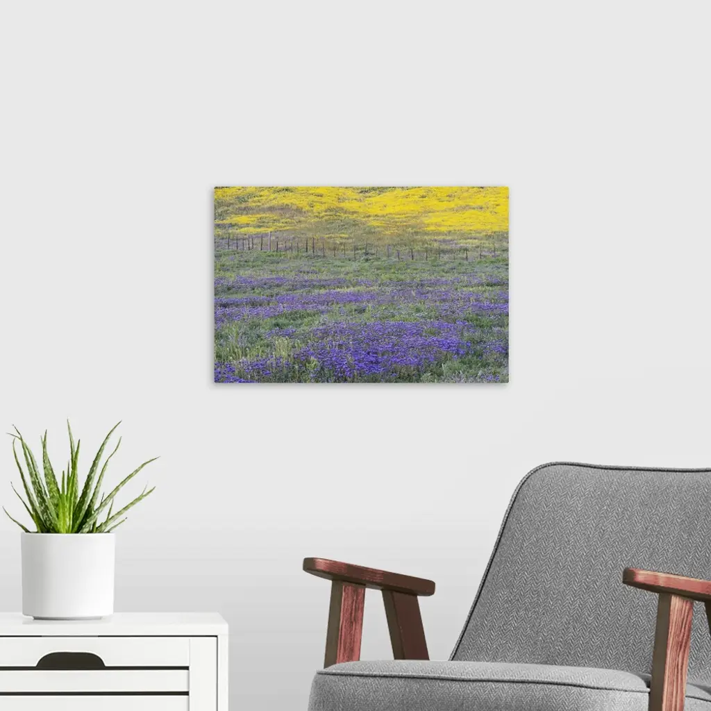 Usa, California, Carrizo Plain National Monument, Spring Wildflowers On Hillside