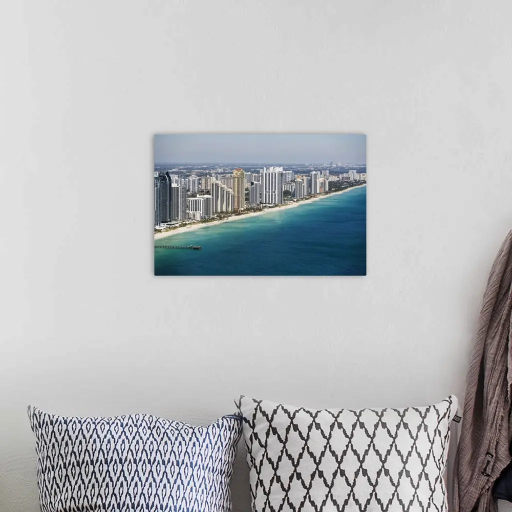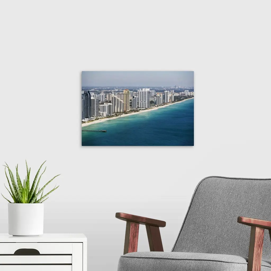 USA, Florida, Miami, Cityscape with beach wall art for home and office decor. Discover canvas art prints, photos, mural, big canvas art and framed wall art in GreatBigCanvas.com's varied collections.