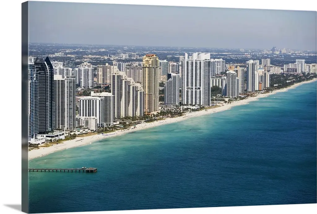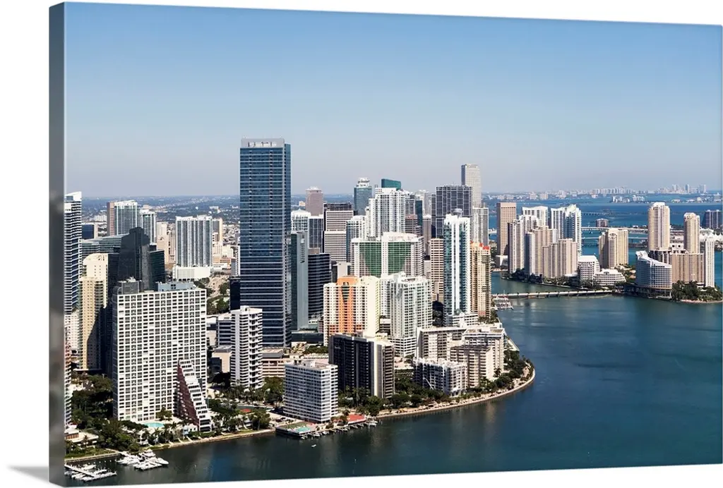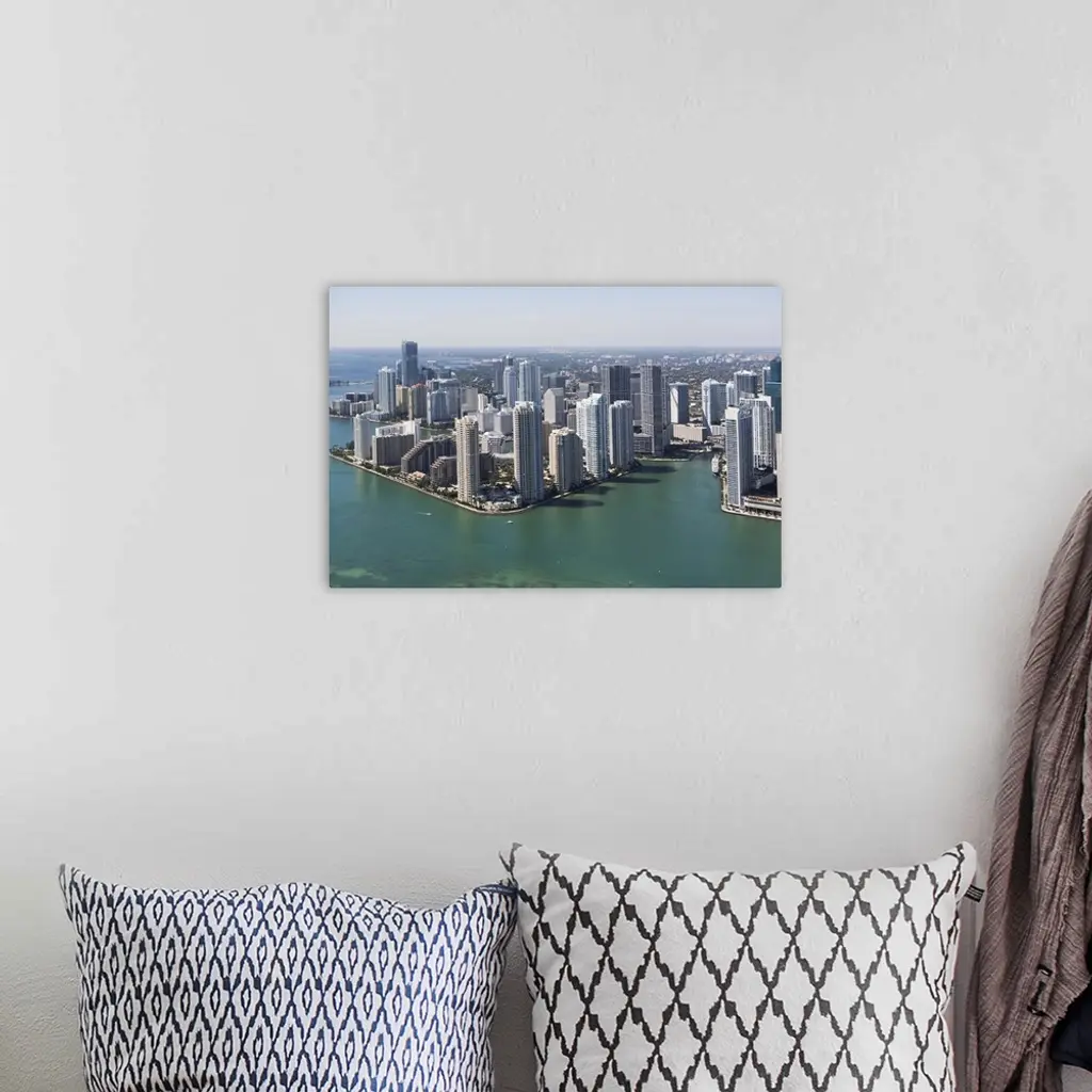 USA, Florida, Miami skyline as seen from air wall art for home and office decor. Discover canvas art prints, photos, mural, big canvas art and framed wall art in GreatBigCanvas.com's varied collections.
