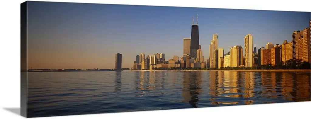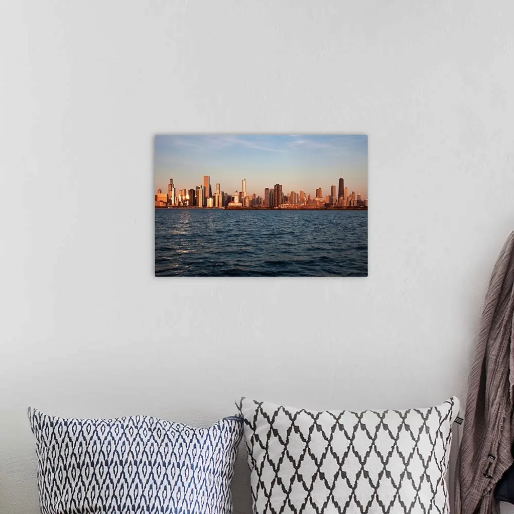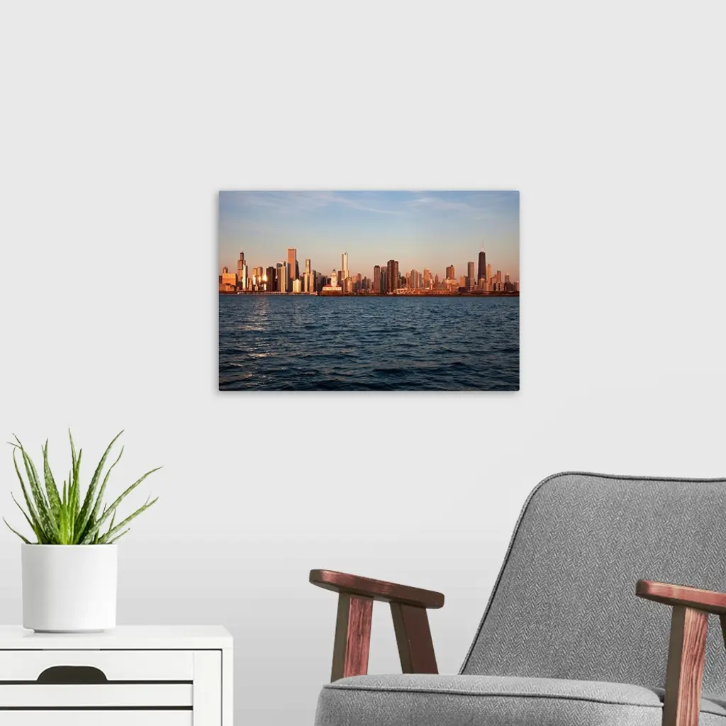 USA, Illinois, Chicago, City skyline over Lake Michigan wall art for home and office decor. Discover canvas art prints, photos, mural, big canvas art and framed wall art in GreatBigCanvas.com's varied collections.