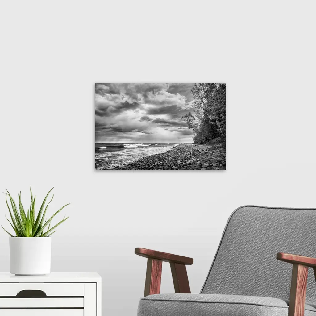 Usa, Michigan, Munising, Receding Storm Clouds At Pictured Rocks National Lakeshore