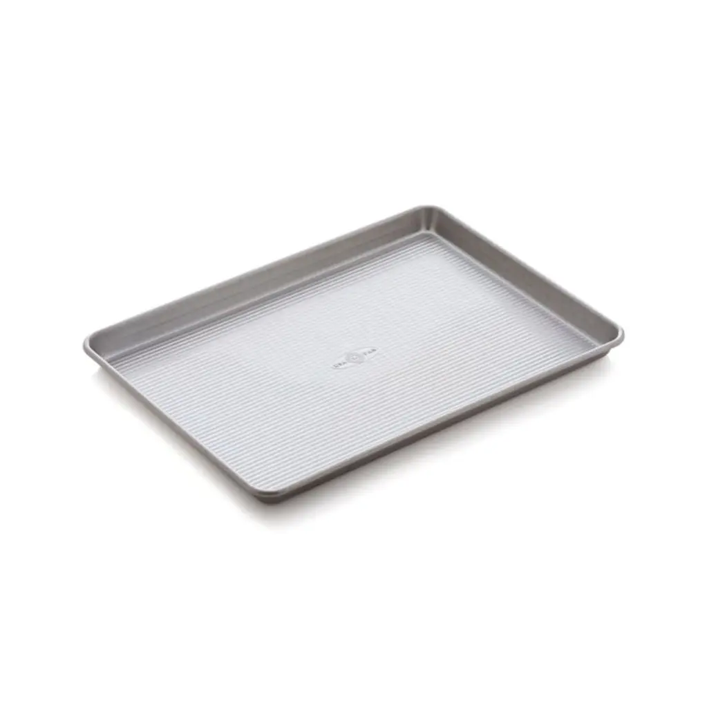 Environmentally responsible nonstick bakeware features sturdy construction in heavy-gauge aluminized steel that's 65 percent recycled. Its nonstick silicone finish is specially formulated for baking, releasing foods easily and efficiently. Rims are reinforced with steel wire for added strength and warp-resistance.