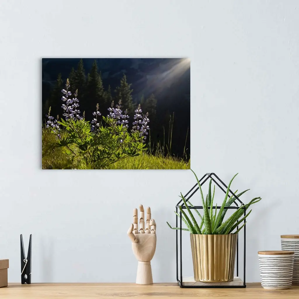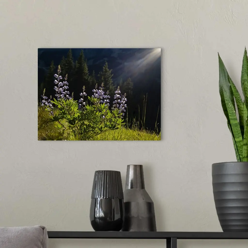 Usa, Washington State, Crystal Mountain, Backlit Broadleaf Lupine In Meadow