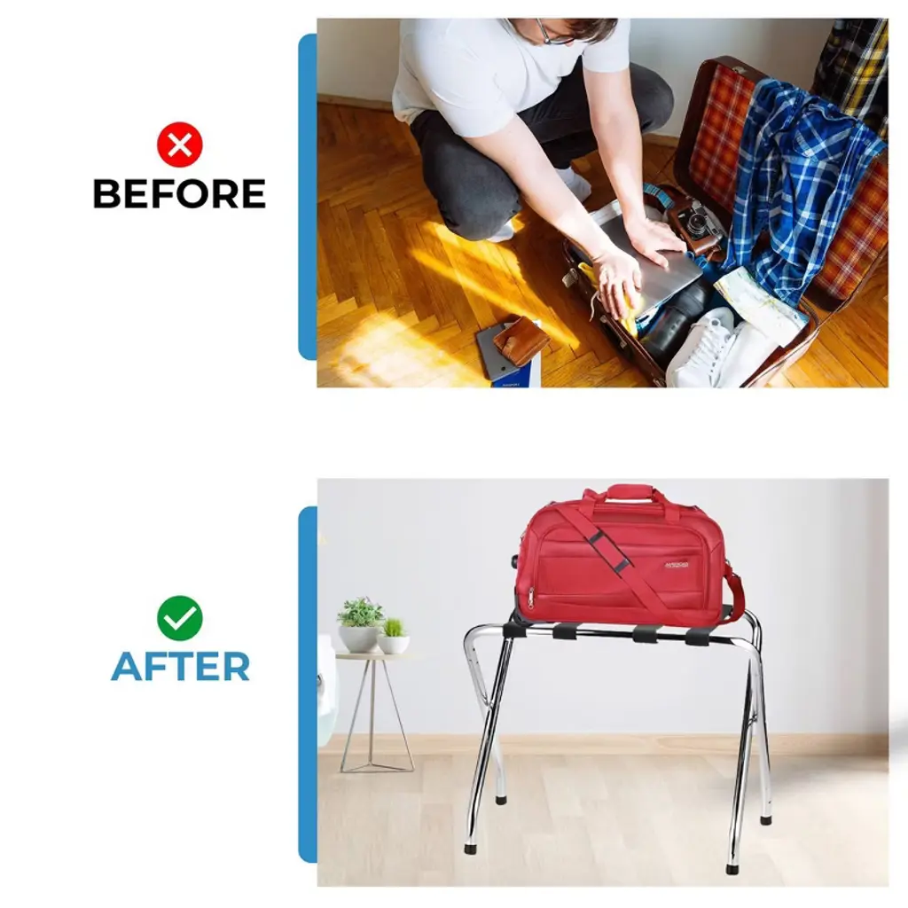 Single Rack-Luggage Rack, Pack of 2, Chrome, Self Asssembly, Luggage Rack for Guest Room