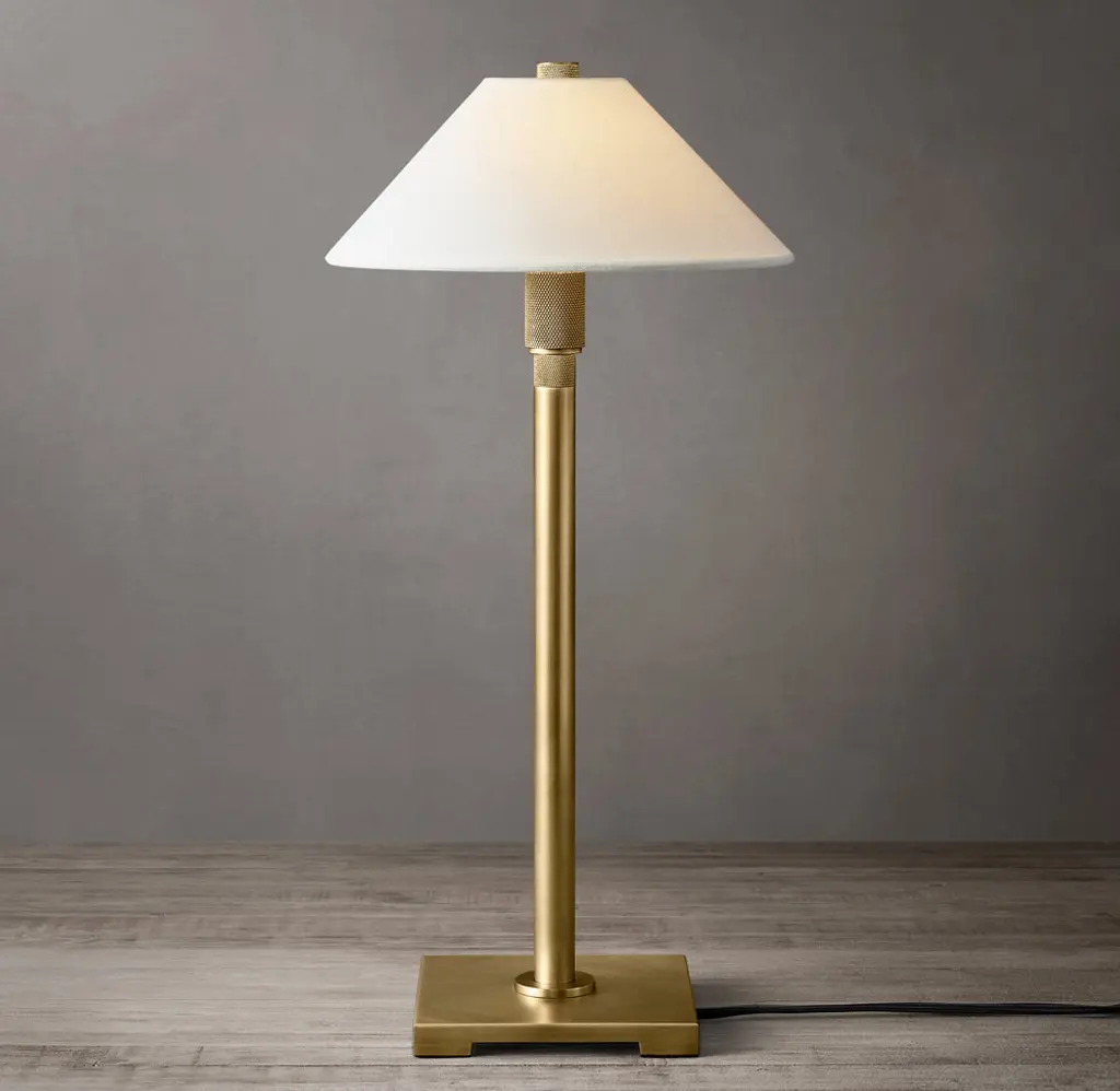 Our Utilitaire lamp from Ian K. Fowler is both polished and spare, representing an industrial minimalist vision. A subtly integrated telescoping mechanism allows height adjustment, while the socket's precisely crafted diamond knurled texture and simple linen slope shade offer restrained embellishment. SHOP THE ENTIRE COLLECTION