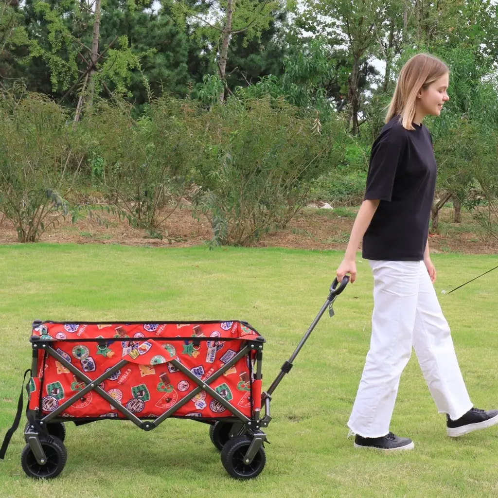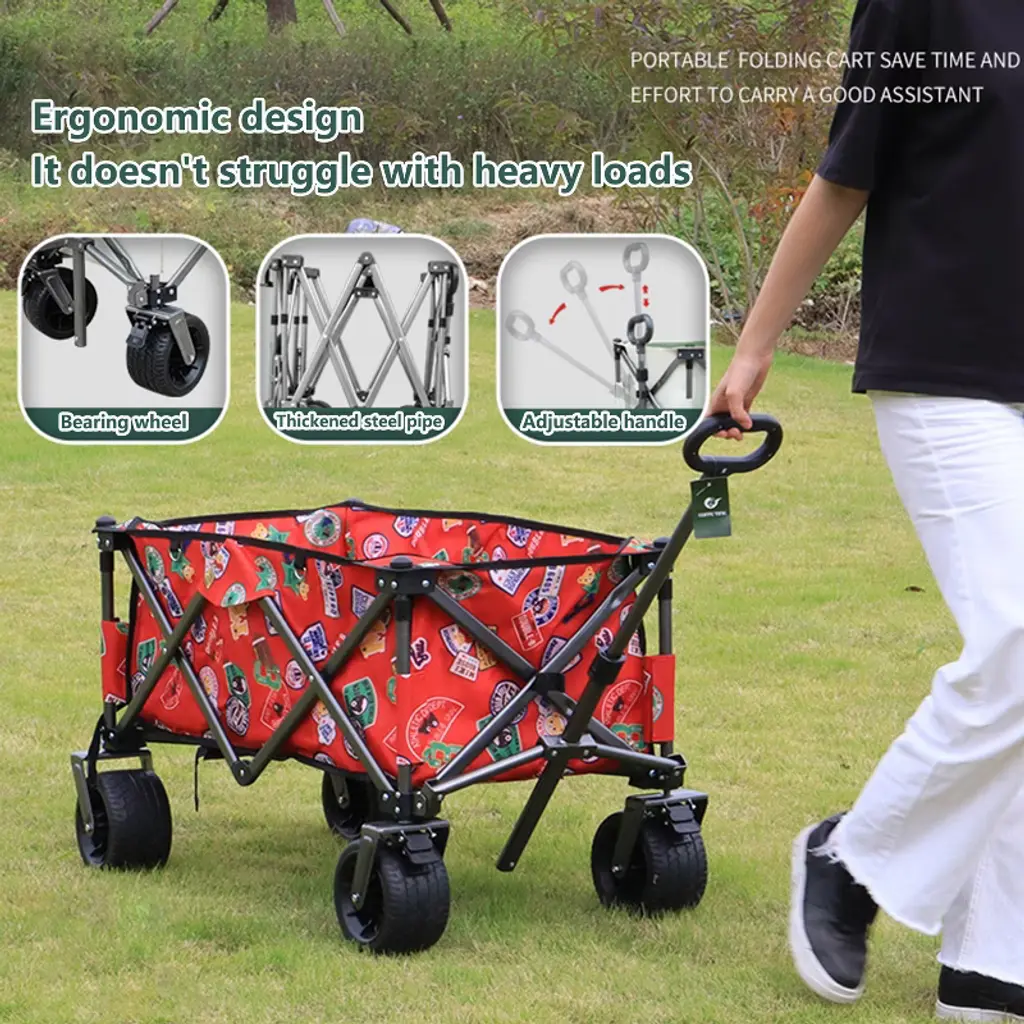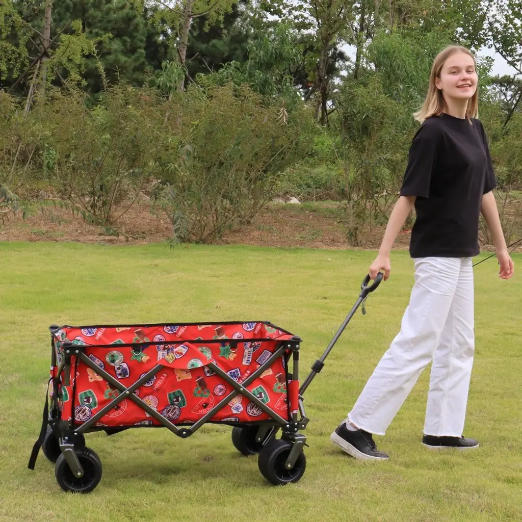 Utility Park Garden Cart Tool Customized Color Folding Camping Trolley Outdoor Picnic Beach Wagon, Red