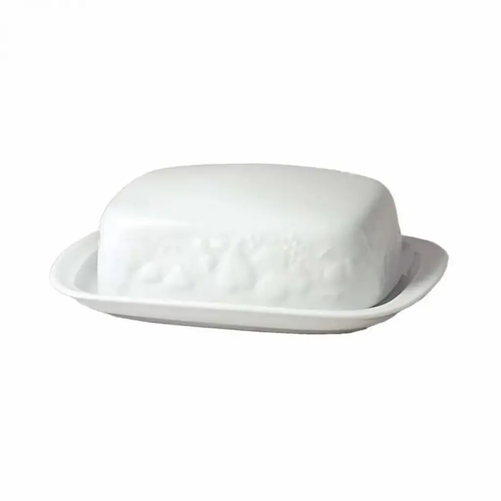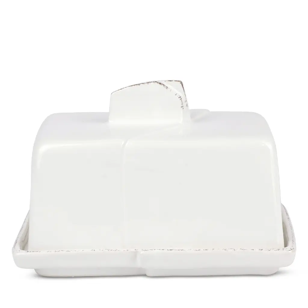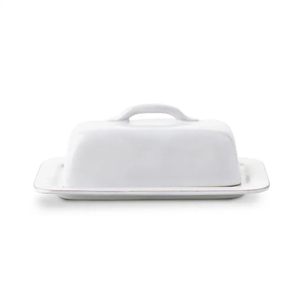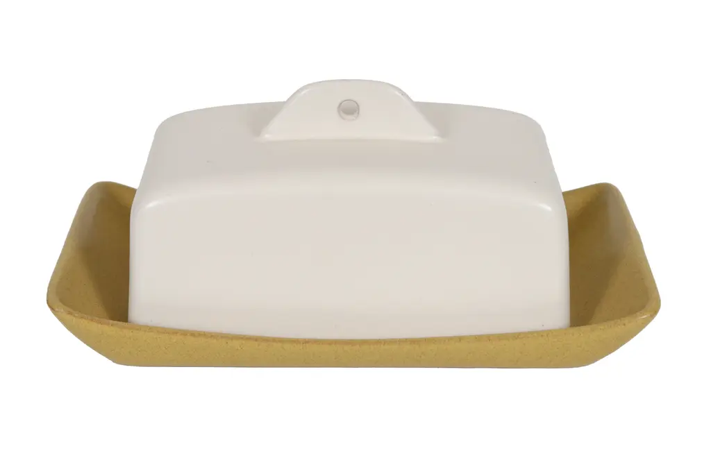 Made of stoneware, our Utility Butter Dish has a handy printed top that keeps your butter fresh.