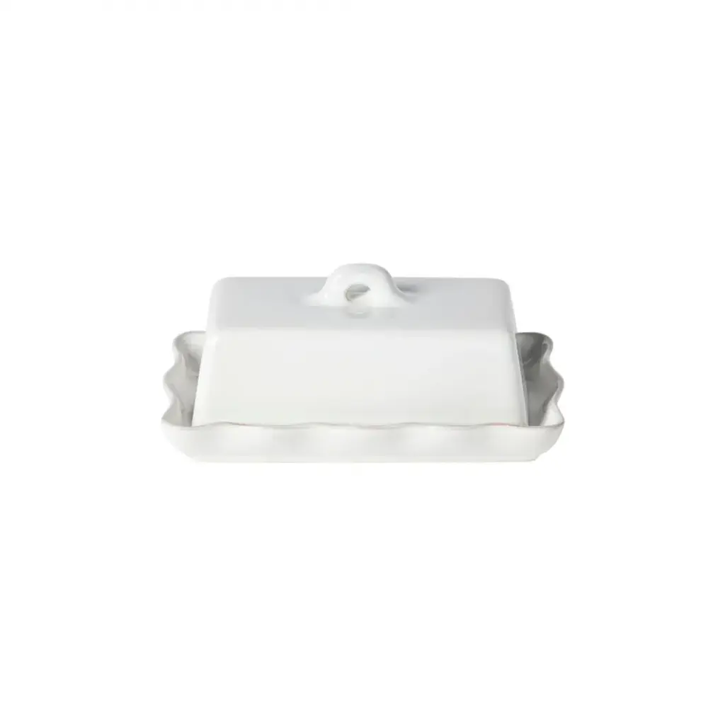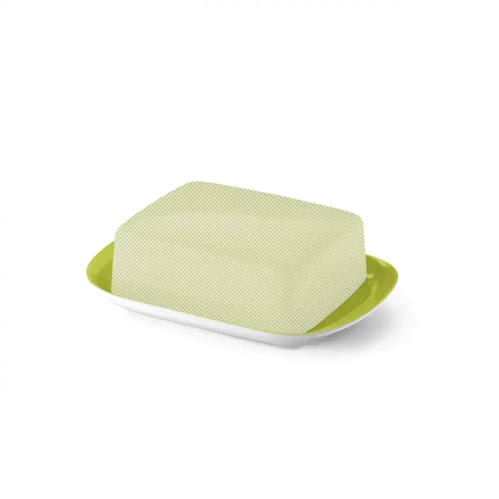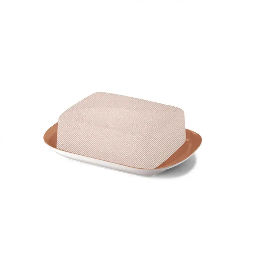 Made of stoneware, our Utility Butter Dish has a handy printed top that keeps your butter fresh.