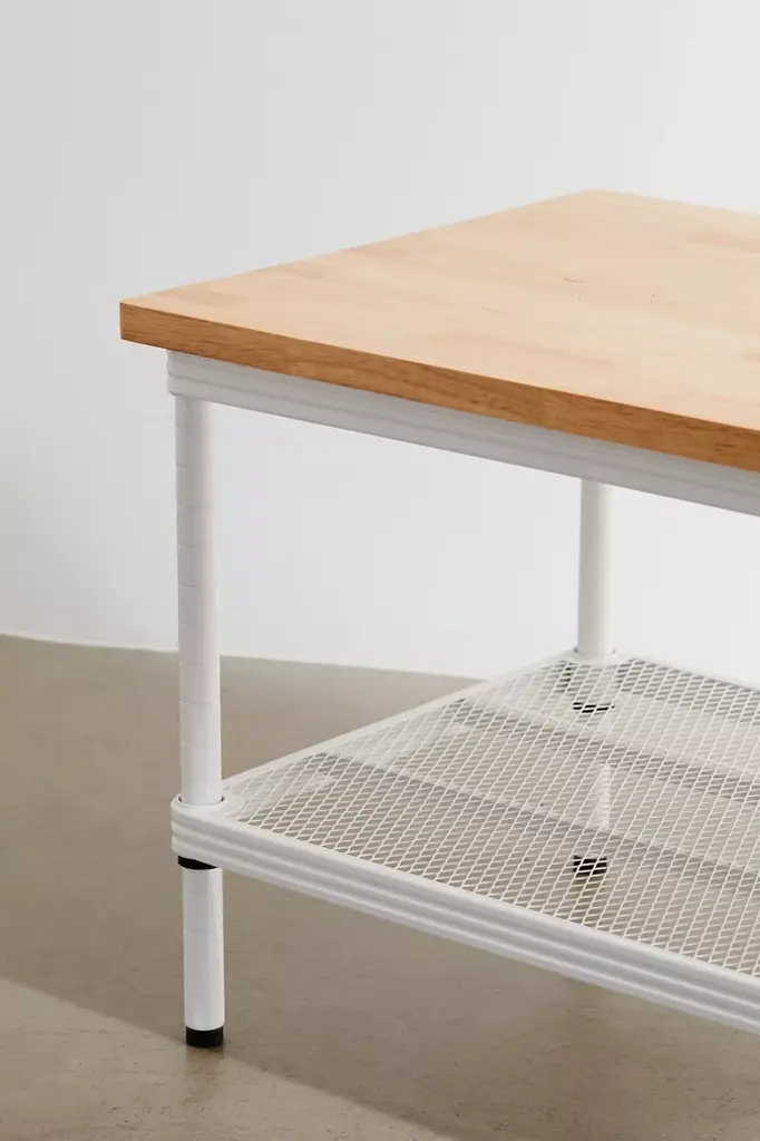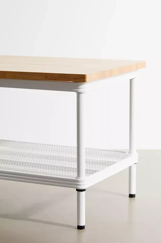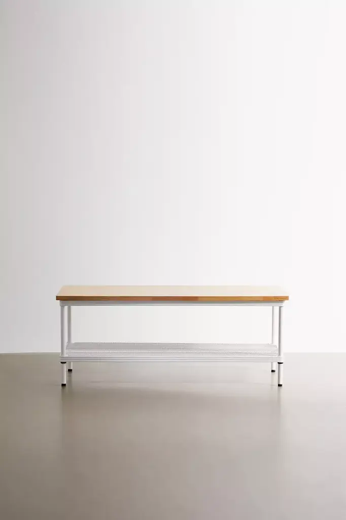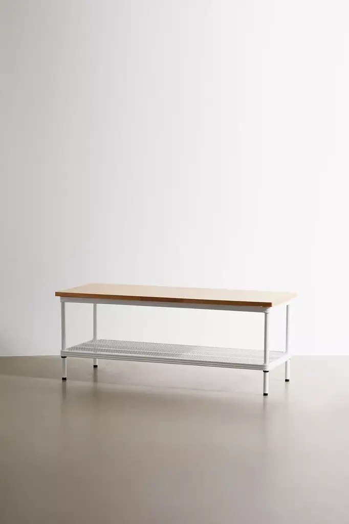 So versatile, this industrial-inspired storage bench suits your space in so many ways. Whether you use it as a bookshelf or media console, it has plenty of room for all your favorite things, with an adjustable mesh shelf finished with a rubber wood tabletop. Assembly required. **Features** \- Utility storage bench \- 2 adjustable shelves \- Suitable for indoor use **Content + Care** \- Assembly required - instructions and hardware included \- Steel, rubber wood, epoxy \- Wipe clean \- Imported **Size** \- Dimensions: 47.2"l x 17.7"w x 17.7"h \- Leg height: 17.7" \- Shelving weight limit: 600 lbs \- Weight: 21 lbs \- Shipping package dimensions: 49.6"l x 16.1"w x 4.2"h \- Shipping package weight: 21 lbs