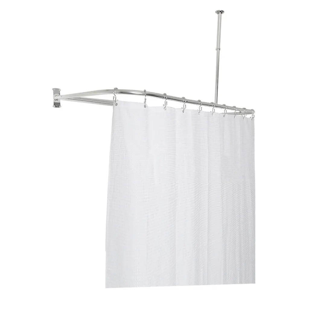 Utopia Alley Rustproof Aluminum D-Shape Shower Rod With Ceiling Support For Freestanding Tubs, 60 * 25 In - Chrome