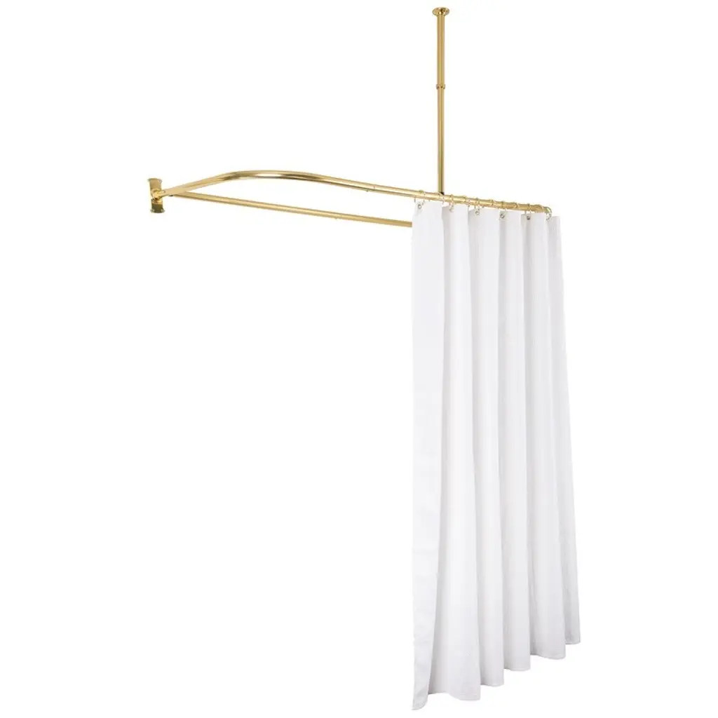 Utopia Alley Rustproof Aluminum D-Shape Shower Rod With Ceiling Support For Freestanding Tubs, 60 * 25 In - Gold