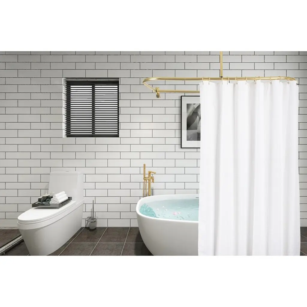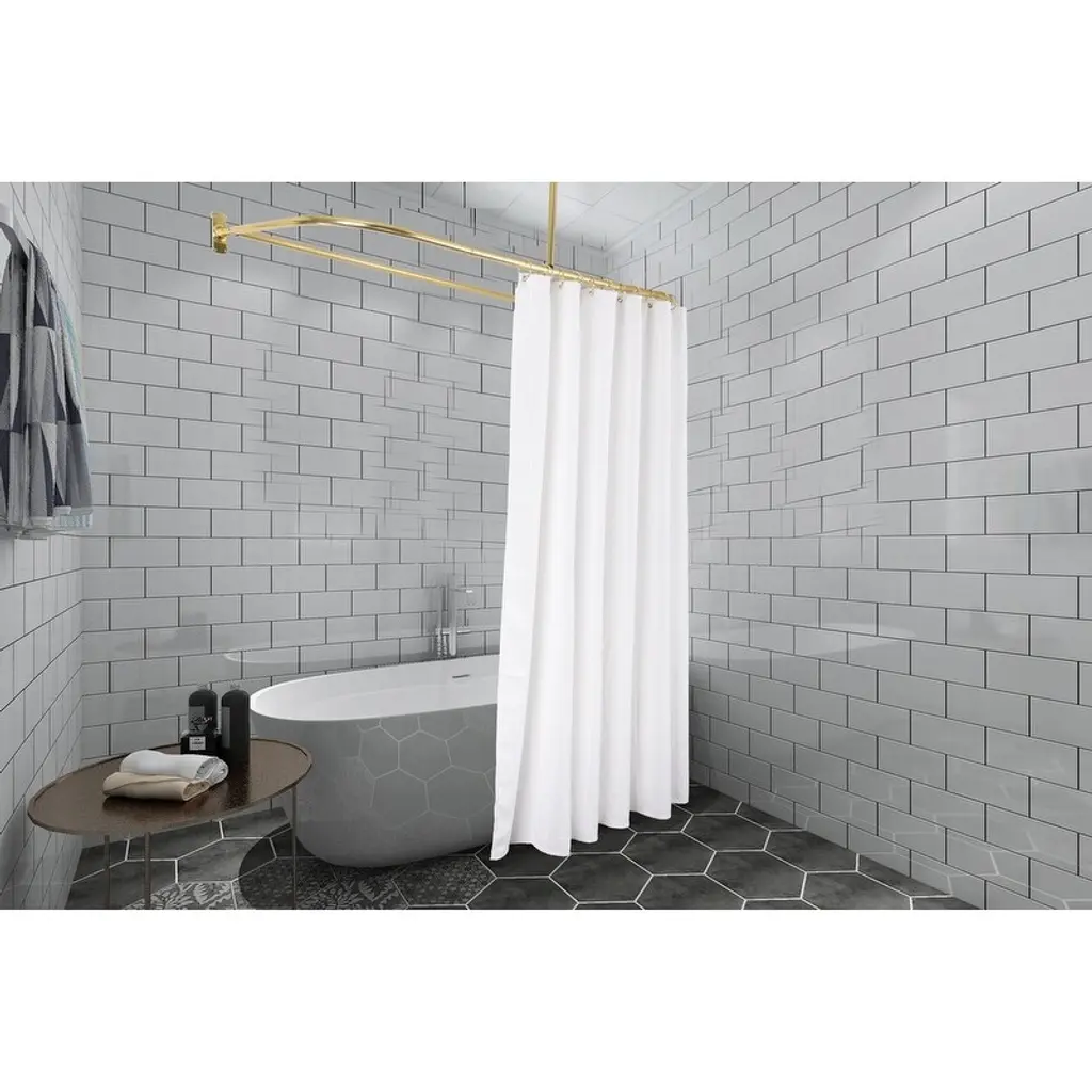 Constructed with durable aluminum-- guaranteed rust free for life! D-shape curtain rod is perfect for freestanding tubs and shower spaces. Mounts onto the ceiling. Finish options: Black, Brushed Nickel, Chrome, Oil Rubbed Bronze & Gold. Size: Overall length is 61" and Width is 28". Inside D measures 60" L x25" W. Ceiling support adjusts 24-30" ABOUT US: UTOPIA ALLEY is a woman-owned and operated business. Our goal is to provide our customers with furniture, home decor, essentials, and accessories made with durable products and exceptional craftsmanship. We believe in creating a stylish, comfortable space where you can relax, recharge, and feel inspired.