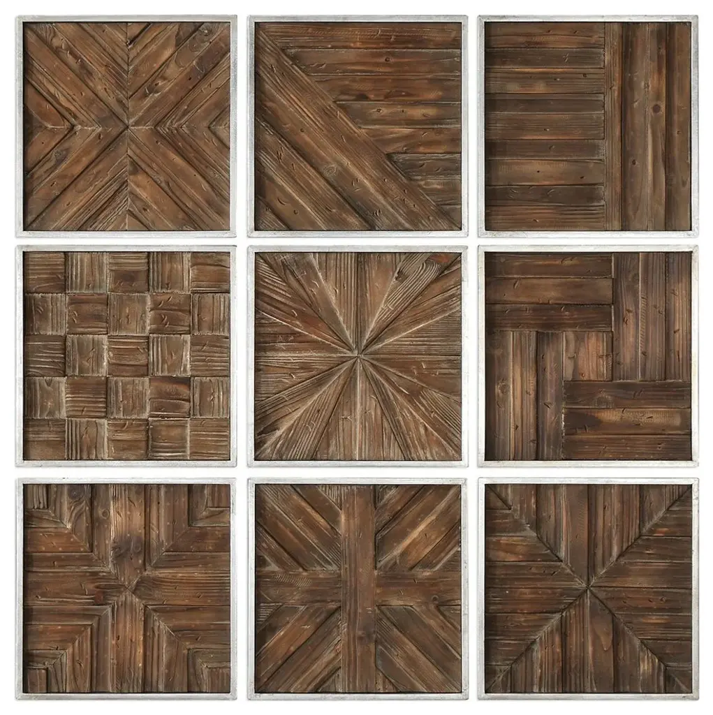 A Collage Of Unique 3-dimensional Pieced Patterns Of Rustic Distressed Fir Wood, Framed In Silver Leaf. Uttermost''s Wall Art Combines Premium Quality Materials With Unique High-style Design. With The Advanced Product Engineering And Packaging Reinforcement, Uttermost Maintains Some Of The Lowest Damage Rates In The Industry. Each Product Is Designed, Manufactured And Packaged With Shipping In Mind. DimensionsDepth: 1. 25 in. Width: 12. 5 in. Height: 12. 5 in.