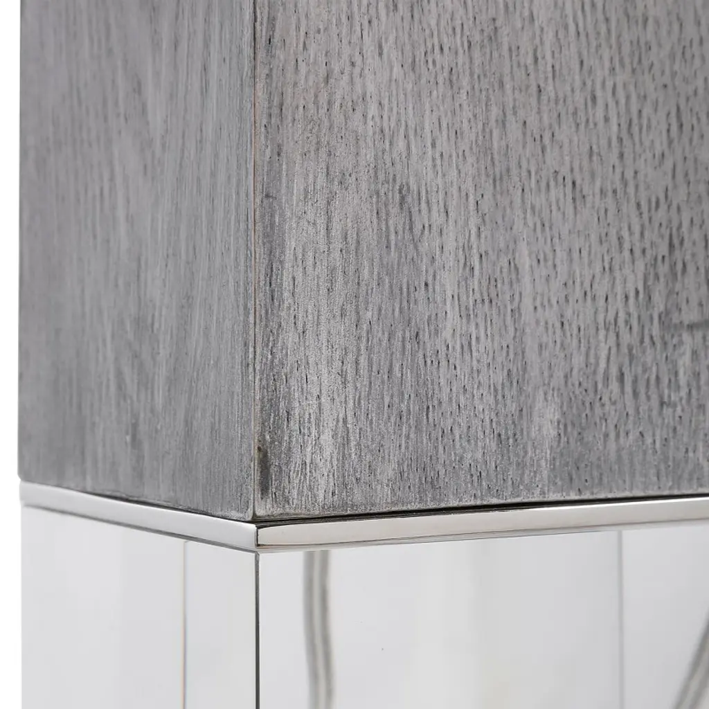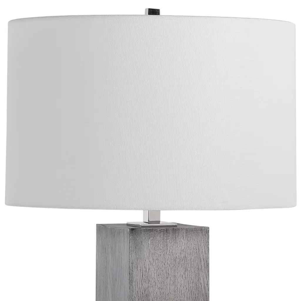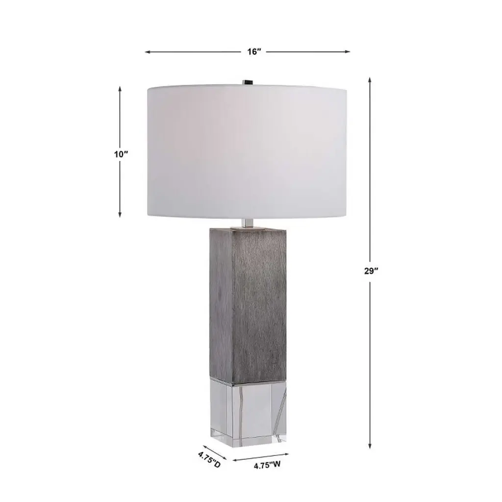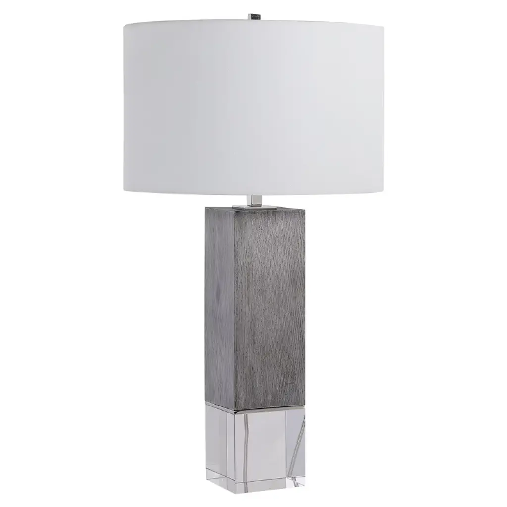 Uttermost Cordata Modern Lodge Table Lamp With Gray Oak Finish, Crystal Base & Drum Shade, 28.75"h
